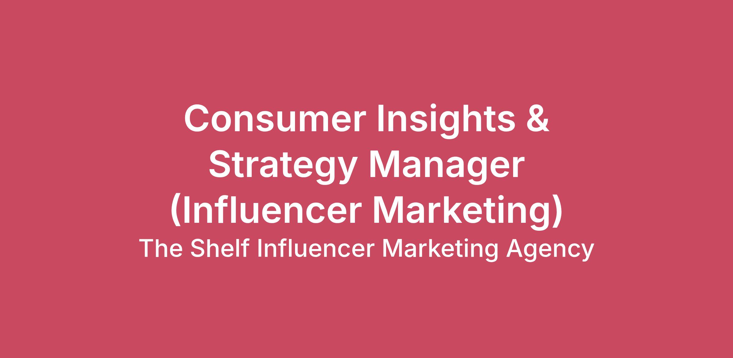 Consumer Insights & Strategy Manager (Influencer Marketing)