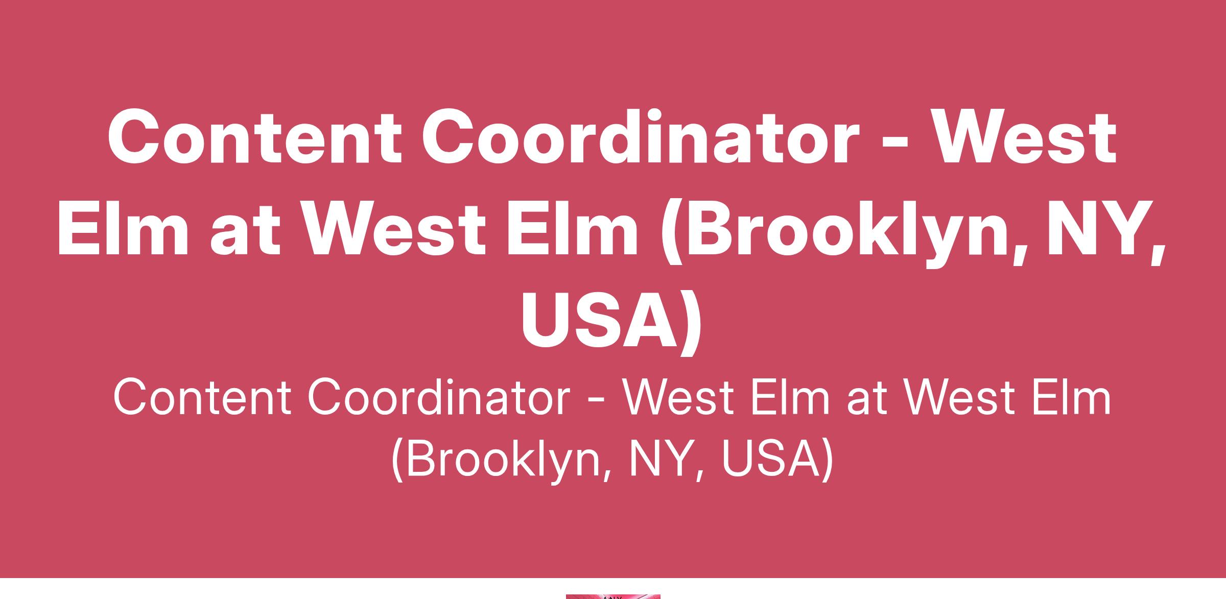 Content Coordinator - West Elm at West Elm (Brooklyn, NY, USA)