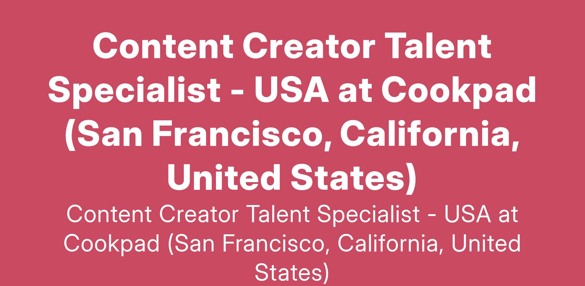 Content Creator Talent Specialist - USA at Cookpad (San Francisco, California, United States)