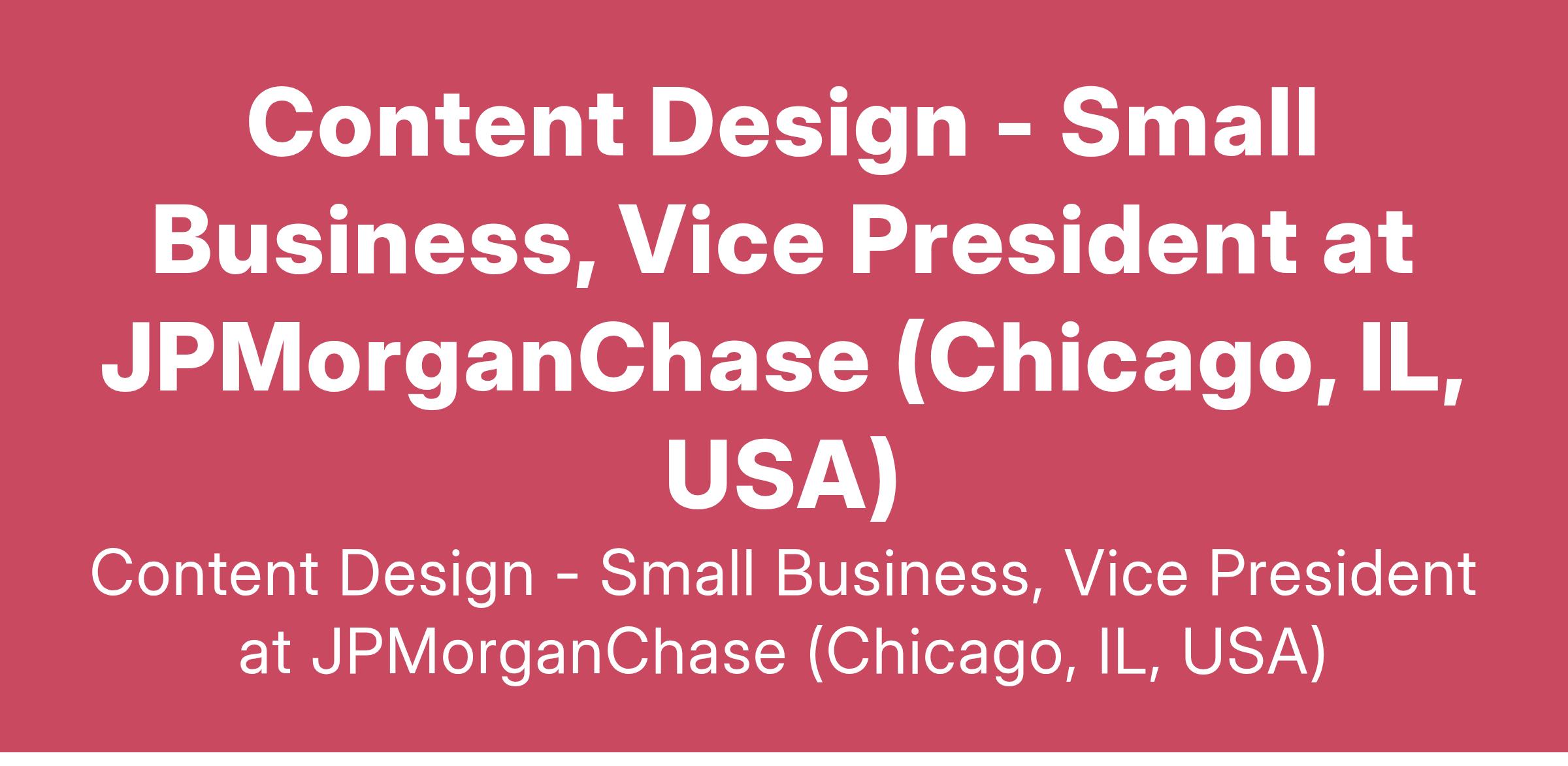 Content Design - Small Business, Vice President at JPMorganChase (Chicago, IL, USA)
