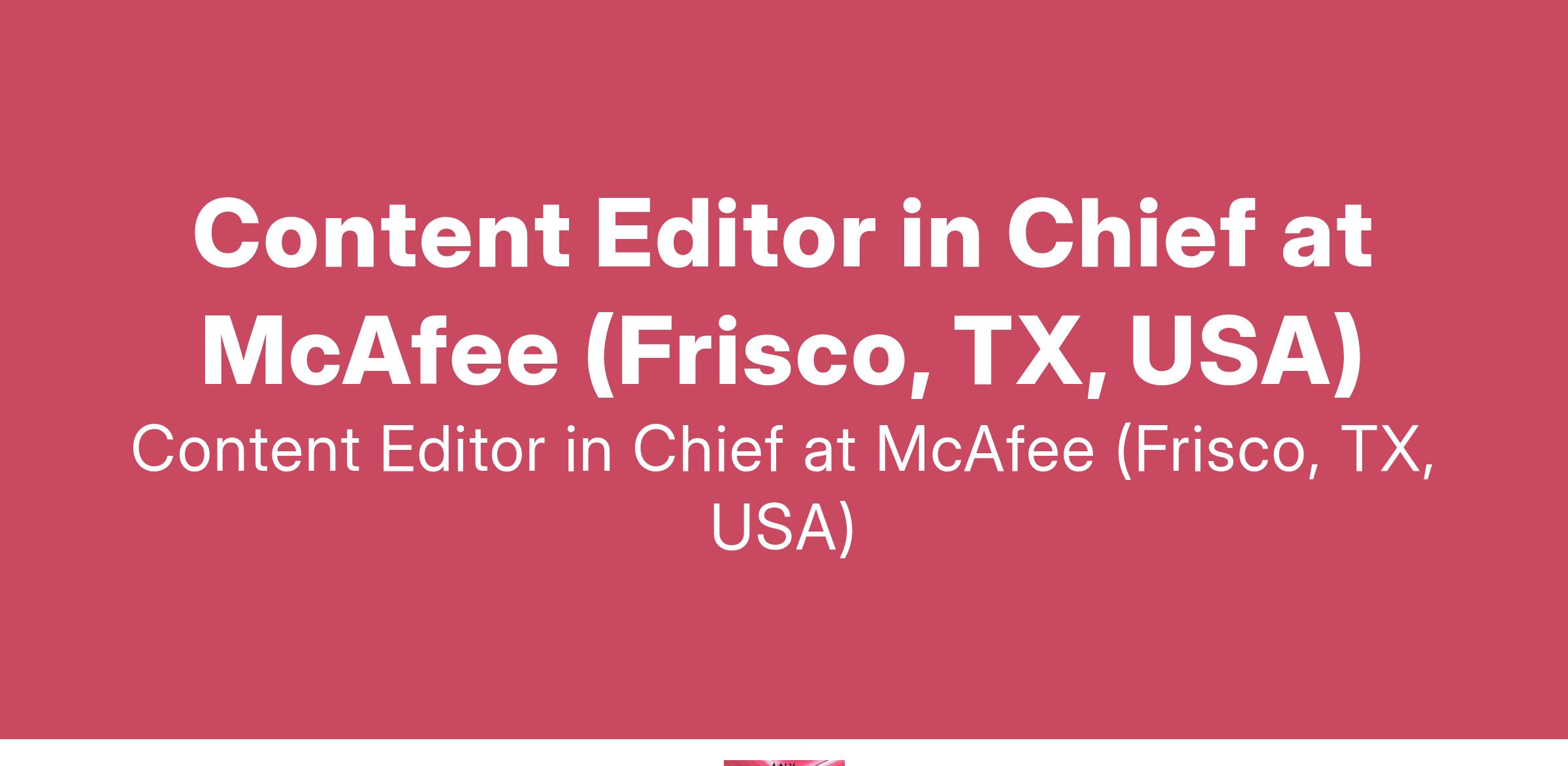 Content Editor in Chief at McAfee (Frisco, TX, USA)