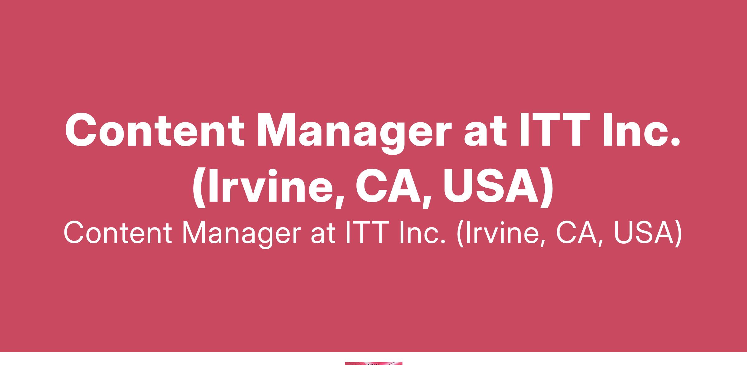 Content Manager at ITT Inc. (Irvine, CA, USA)