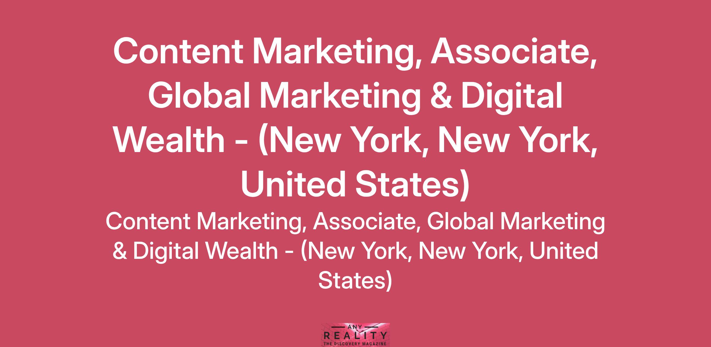 The Team: The Global Marketing & Digital Wealth organization at BlackRock is a forward-looking, globally connected team at the center of the firm’s most high-impact priorities. We are architects of growth, working across functions and markets to unlock opportunities and accelerate outcomes for the business. In collaboration with both internal and external partners, we design the conditions for success—delivering next-generation campaigns, brand platforms, communications, training, and client experiences. Our work is powered by world-class centers of excellence spanning content strategy, research & analytics, and digital platforms & experiences.