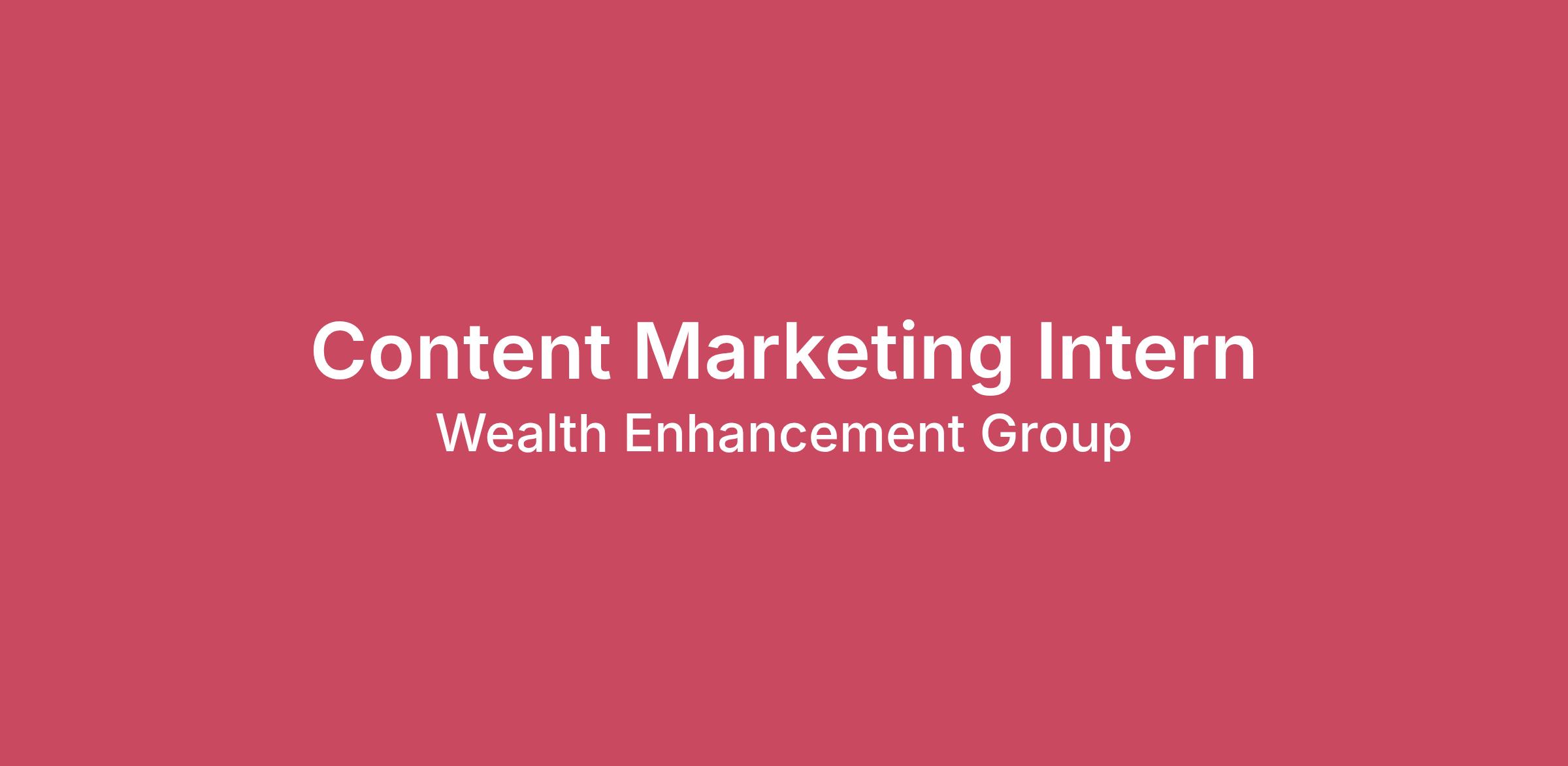 About Wealth EnhancementWealth Enhancement is an independent wealth management firm with an endless passion for enriching the lives of our clients. We continually seek to perfect our craft of personalized financial planning with our team-based Roundtable and UniFi processes that go far beyond the standard approach. We proudly provide unique financial plans and investment management services to over 80,000 households from our over 140 offices - and growing - nationwide.Since 1997, Wealth Enhancement has tirelessly raised the standard of wealth management with specialized knowledge and more attentive service that helps every client craft their future. For more information, please visit www.wealthenhancement.com.Our Corporate Office is seeking a Content Marketing Intern to join our team. This internship provides an exceptional opportunity for students to gain hands‑on experience in content creation, SEO, and competitive research within the wealth management industry. The intern will work closely with the content and integrated marketing teams to rewrite articles, update key information, and support projects that strengthen our visibility across search engines and AI‑driven platforms. Key takeaways from this role include building strong writing and editing skills, learning SEO/AEO best practices, and gaining exposure to real‑world content optimization. This is a fully remote internship opportunity.In the spirit of pay transparency, we are excited to share the hourly rate for this position is $21 per hour.Primary Job FunctionsImplement SEO and AEO strategiesWork with the content team to implement SEO and AEO strategies that make Wealth Enhancement more visible in LLM, AIO, and SERP resultsStay up to date on the latest AEO developments and strategiesConduct competitive analysis on comparable RIAs and creation actionable insights for SEO and AEO activitiesReview and update blog articles from our websiteRewrite articles and service pages according to SEO and AEO best practicesEnsure that articles adhere to our brand standards and style guide and use compliance-approved languagePerform competitive analysis to see what our competitors are saying and how they’re saying it to fill potential gaps in our own messaging or identify potential new channelsMiscellaneous ProjectsSupport the team with ad hoc projects relating to marketing campaigns, promotional campaigns, and nurture campaigns, YouTube channel updates, etc.Conduct research and analysisEducation/QualificationsMust be actively enrolled in a college or university degree program to be eligible for an internship. Candidates who have already graduated or will graduate before the start of the summer intern program are not eligible.Preferably pursuing bachelor’s degree in English, marketing, journalism, or communications.Preferably students between their junior and senior years.Well-developed written and verbal communication skills with the ability to successfully interact with people at all levels of the organization.Detail oriented, highly organized and adaptable.Proficient with Microsoft Office Suite or related software.WEG hires employees and makes decisions about their salary qualifications based on factors such as: the role to be performed; educational and professional experience, qualifications, skills and credentials; tenure, cost-of-living and demand for the role in the applicable market. To comply with state pay transparency laws, we must disclose the entire salary grade. The entire salary grade for those who are classified as the Intern level is $38,700.00 to$ 54,200.00. However, the base salary range bolded above is what we expect to pay as a starting range for this position.#LI-KH1#LI-RemoteComprehensive Benefits OfferingsOur benefits aim to balance four key elements that make life and work meaningful: health and wellness, financial well-being, professional development, and work/life harmony. As an intern, you may participate in the following benefits & development opportunities:Training and professional developmentWellness programs and resourcesWorker's compensation – employer paidShould you need reasonable accommodation when completing the application form or during the selection process, contact the Human Resources Department at 763-417-1700Information provided on this application will be kept confidential and only be shared with those involved in the selection process.Equal Opportunity Employer, including disabled and veterans. This organization participates in E-Verify. Click the following link to view Federal and E-Verify posters: LinkOSHA Requirements: This position requires the ability to stand or sit for long periods of time, file documents in high or low cabinets, to use the telephone and to use the computer systems.Wealth Enhancement may use artificial intelligence (AI) tools to assist in the initial screening of resumes. All AI-supported evaluations are reviewed by our recruitment team to ensure accuracy and fairness. We are committed to equal opportunity in employment and do not discriminate based on race, color, religion, sex, national origin, age, disability, or any other protected status. Your personal information is handled in accordance with applicable data protection laws.