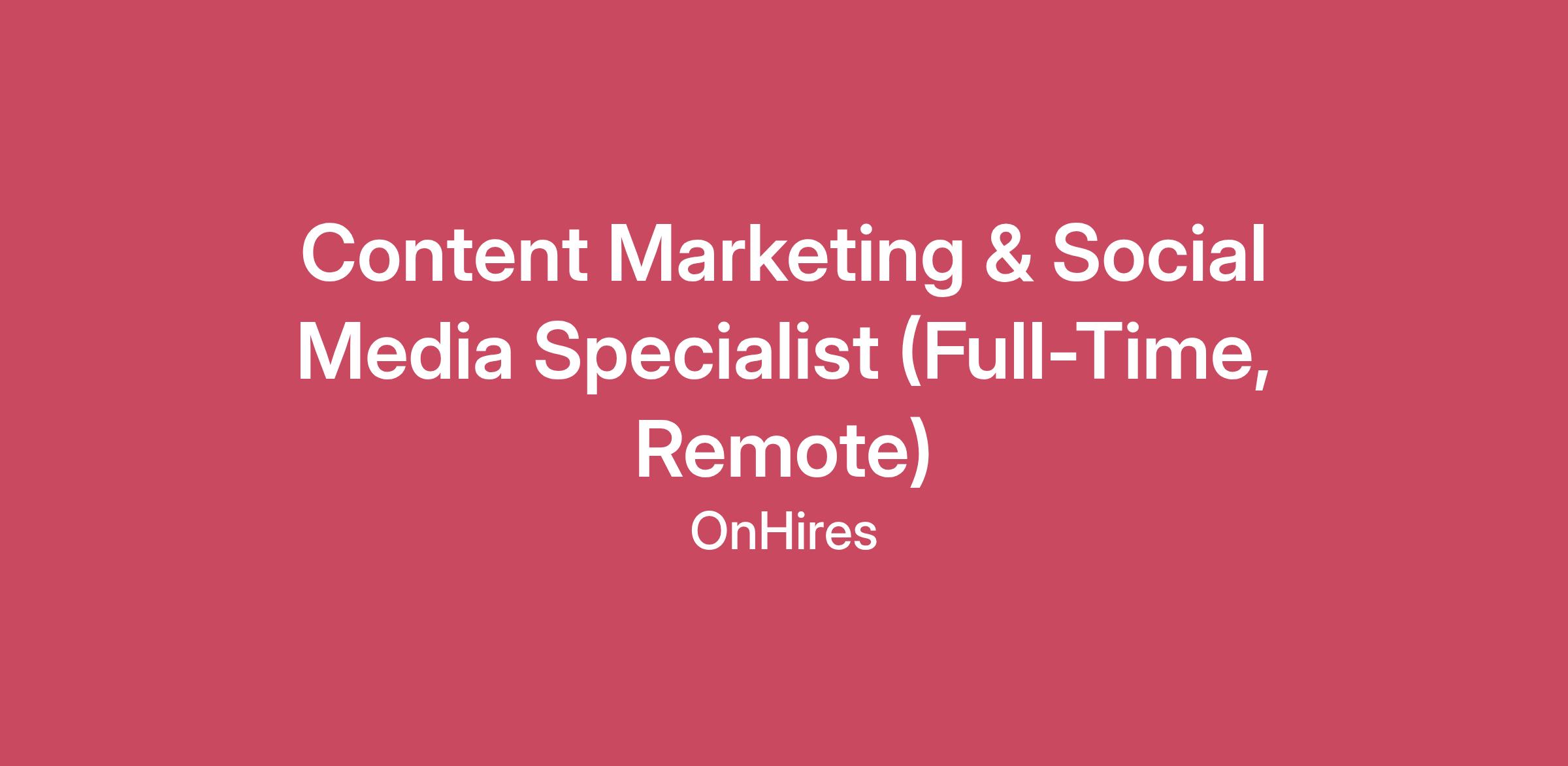 Content Marketing & Social Media Specialist (Full-Time, Remote)