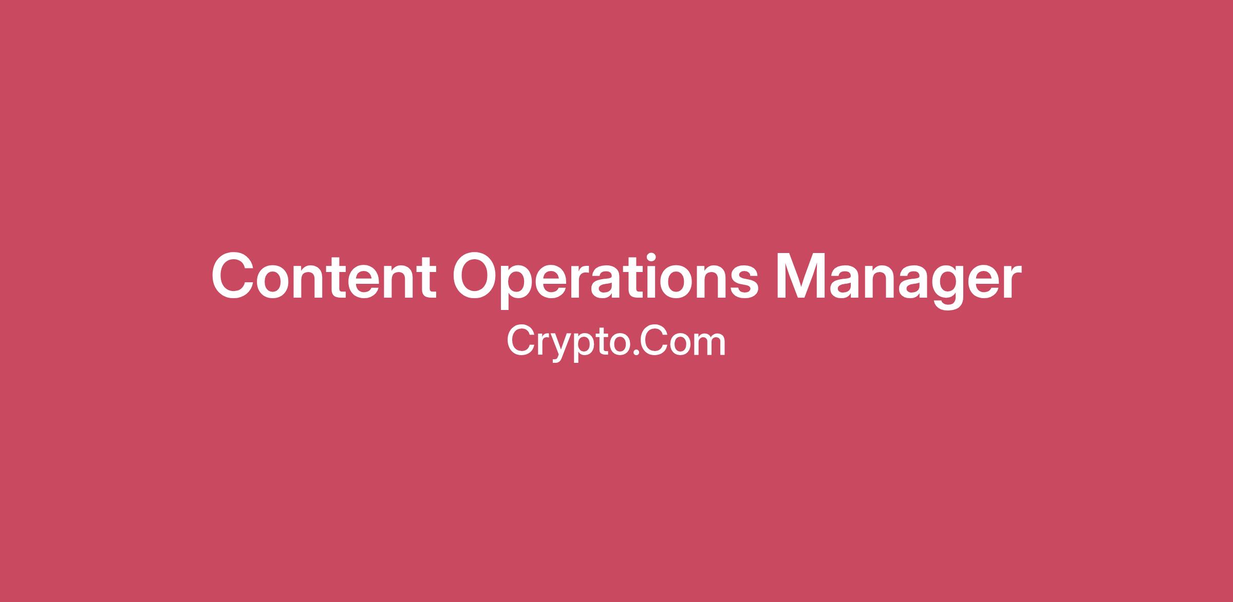 We’re looking for a Content Operations Manager to lead product narratives across the wider Crypto.com ecosystem, including Crypto.com Exchange, Crypto.com NFT, Loaded Lions and Mane City. This role is for individuals fluent in Web3 culture who check every detail, with a genuine excitement for products that sit where technology, culture and community meet.
