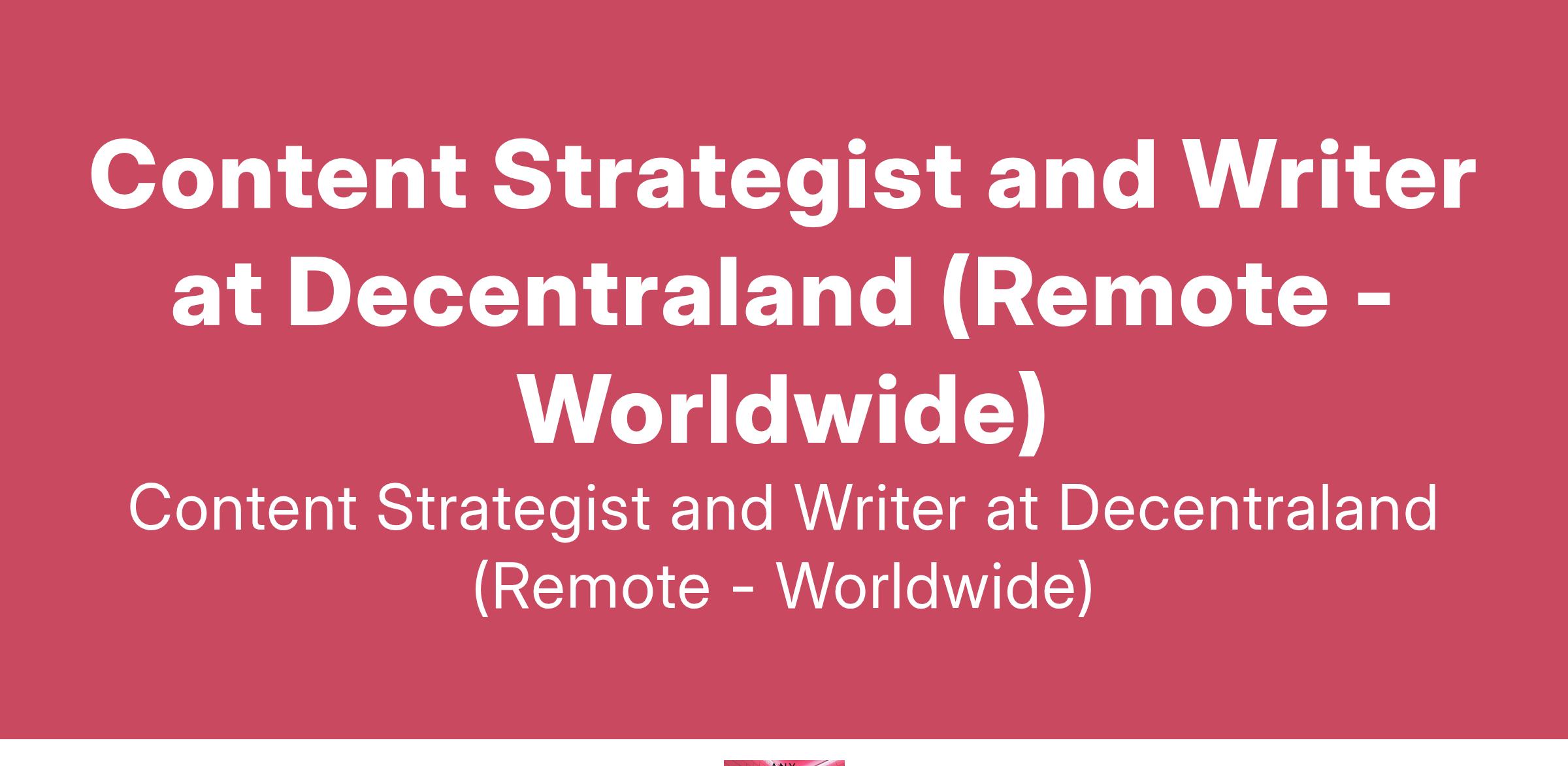 Content Strategist and Writer at Decentraland (Remote - Worldwide)