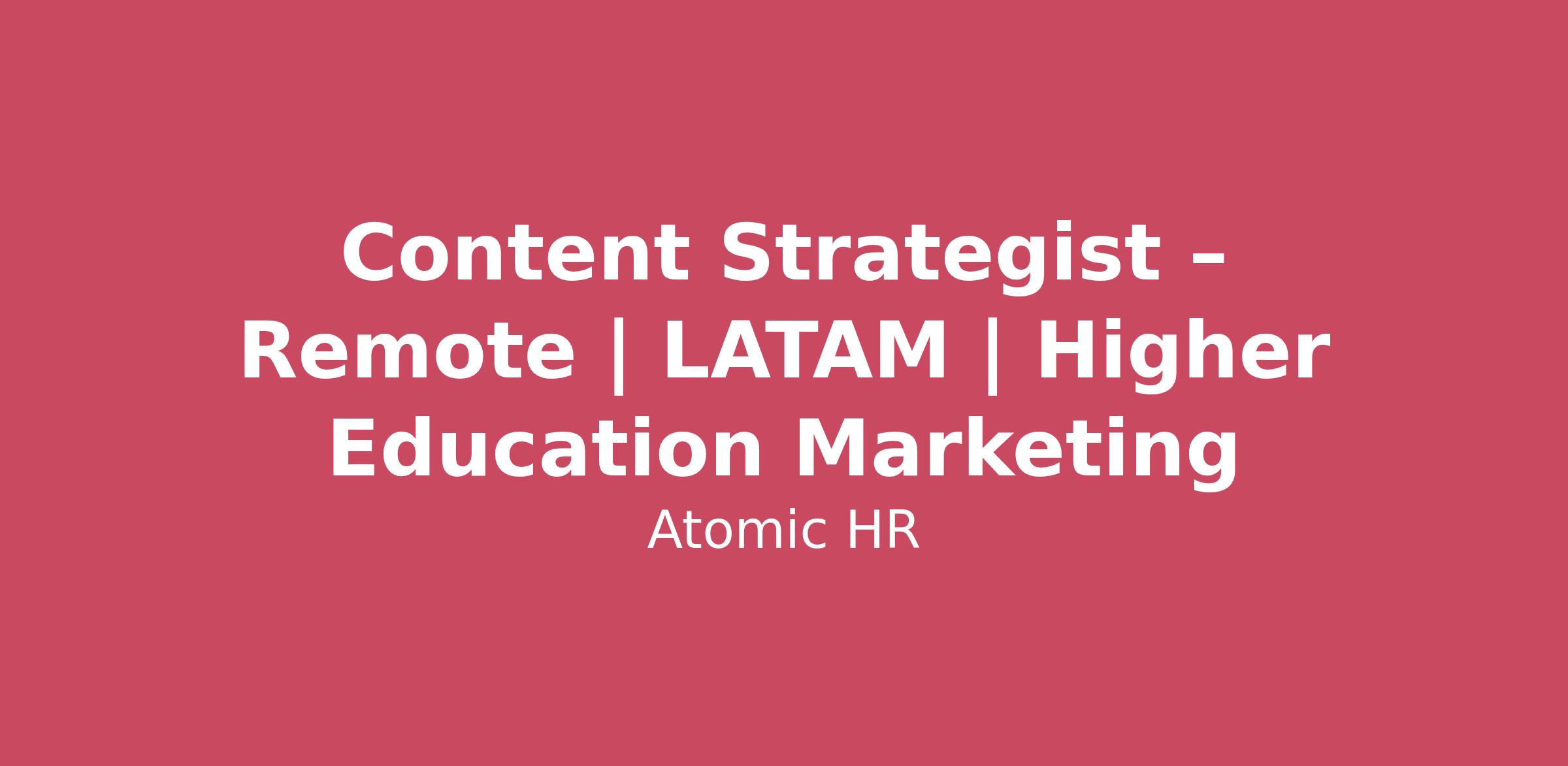 About the RoleA performance marketing agency focused on universities and nonprofit organizations is hiring a Content Strategist to help shape and optimize digital content across complex higher education websites.This role focuses on developing content strategies that support enrollment marketing goals, helping prospective students find the right information while guiding them toward actions like inquiries, program exploration, and applications.You’ll work closely with SEO, paid media, UX, CRO, and analytics teams to ensure content decisions align with both user needs and measurable performance outcomes.This is a great fit for someone who enjoys working at the intersection of content strategy, digital marketing, and user experience, especially within complex multi-program university environments.This is a fully remote role, paid in USD. About the AgencyThis agency works exclusively with universities and nonprofit organizations — partners doing work that expands opportunity and improves communities.Their mission is simple:Build a better agency for organizations building a better world.The team blends strategy, creative thinking, and performance-driven marketing to help partners achieve meaningful outcomes like inquiries, applications, enrollments, and awareness. What You’ll DoYou’ll help shape how content is planned, structured, and optimized across complex university websites.Develop content strategies for higher education marketing initiativesPlan and structure content across large, multi-program websitesEnsure content supports multiple audiences and user journeysCollaborate with SEO, paid media, CRO, UX, and analytics teamsAlign content decisions with digital marketing performance goalsContribute to strategies that support inquiries, applications, and enrollment growthEnsure content structures support discoverability, usability, and conversion✅ What We’re Looking For5+ years of experience in content strategy, digital content, or web strategyExperience working on large, complex websites with multiple programs or audiencesDirect experience with higher education marketing (universities, online programs, or agencies supporting HE clients)Experience collaborating with SEO, paid media, CRO, UX, and analytics teamsDemonstrated ability to connect content decisions with measurable marketing outcomes100% fluency in EnglishExperience working with U.S.-based companies or teams Bonus PointsExperience supporting enrollment marketing strategiesBackground working with multi-program university websitesAgency experience supporting higher education clients What You’ll Get Competitive USD compensation based on experience/scope 100% remote role Work that directly impacts organic search performance Collaboration with a mission-driven marketing team Opportunity to work on content that supports universities and nonprofit organizations Why This Role Might Be a Fit✅ You enjoy connecting content strategy with real performance outcomes✅ You’re comfortable navigating large, complex website ecosystems✅ You like working across multiple digital disciplines✅ You think about both user experience and marketing performance✅ You enjoy solving complex digital content challenges Interview ProcessApplication Review – resume and relevant experienceIntro Call – background and content strategy experienceFirst Interview with the Kanahoma Team – experience with higher education and digital content strategyAssessment / Case Exercise – content strategy scenario or reviewFinal Interview – team collaboration and strategic thinkingOfferTimeline: usually 2–3 weeks Ready to Apply?Send your resume and a short note about your content strategy experience, especially your work with complex websites or higher education marketing.If you’ve worked with universities or enrollment-focused digital strategies, we’d love to hear about it. Deadline to apply: March 20th