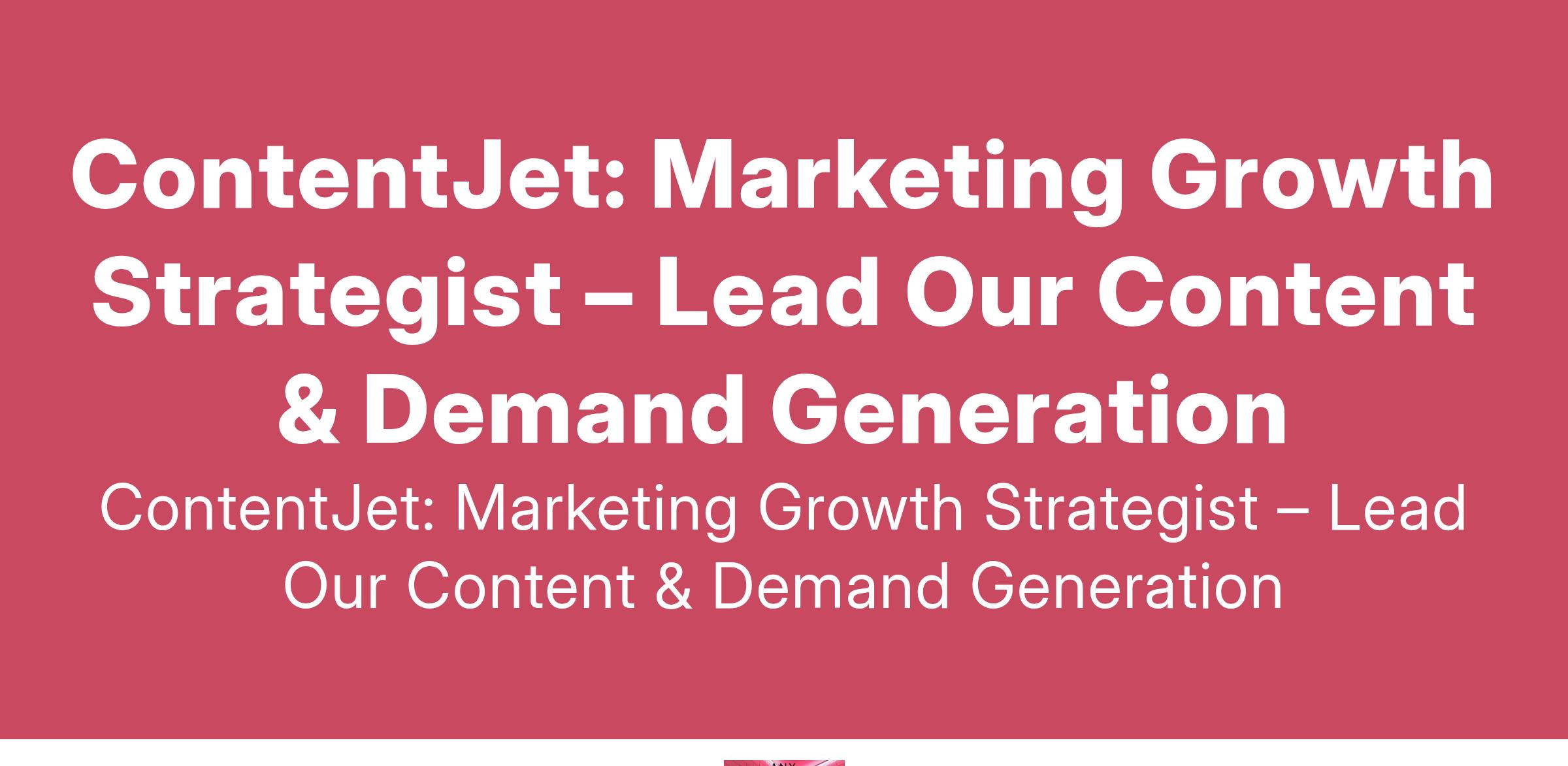 To apply: https://weworkremotely.com/remote-jobs/contentjet-marketing-growth-strategist-lead-our-content-demand-generation