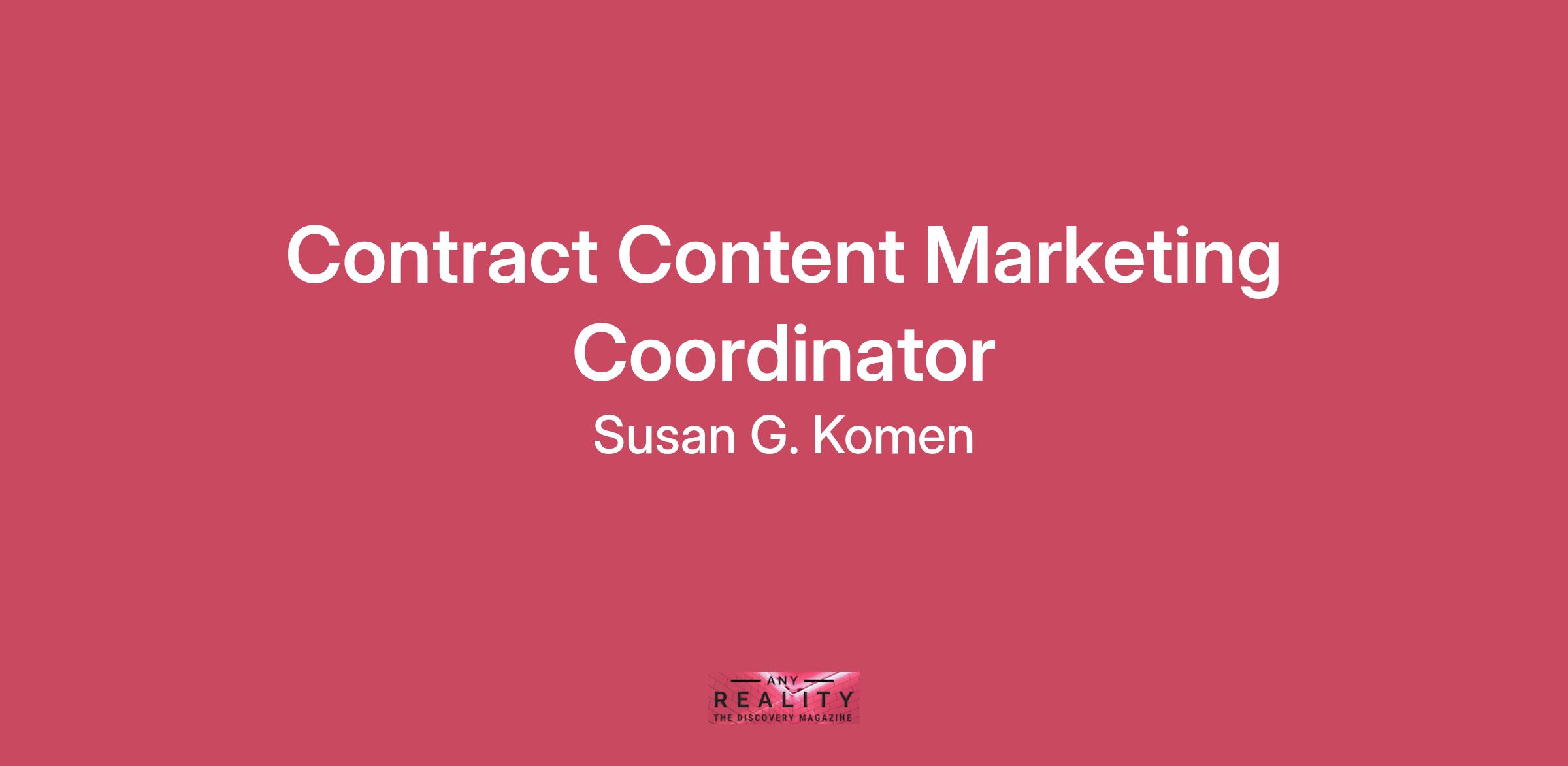 The physical location for the candidate selected must reside within the contiguous United States. Please note this is a contract role. WHO WE ARE!Susan G. Komen brings a 100% virtual working environment, and you can work anywhere within the U.S. We are a force united by a promise to end breast cancer forever. For over 40 years, we've led the way funding groundbreaking research, community health initiatives and advocacy programs in local communities across the U.S. Susan G. Komen is the ONLY organization that addresses breast cancer on multiple fronts such as research, community health, global outreach, and public policy initiatives to make the biggest impact against this disease.Komen strives to have a culture of passionate, growth-minded professionals who thrive in a team environment and work collaboratively to inspire greatness in others! We take an ongoing approach to ensure open communication from all levels throughout the organization. It’s encouraged to give and receive feedback to ensure two-way accountability with a focus on continual improvement both personally and professionally!What you will be doing in the role of a Content Marketing Coordinator (Contract)The Temporary Content Marketing Coordinator will support the Brand Marketing team by assisting with analytics, reporting, SEO implementation and content/ project management across digital platforms. This role will work cross-functionally with internal stakeholders and external partners to ensure consistent brand execution and optimized content performance. The ideal candidate is detail-oriented, organized and comfortable working in a fast-paced environment. Hours expected would be 2 days a week, 7.5 hours per day. What you will bring to the tableAnalytics and ReportingPull and compile data for weekly, monthly and quarterly performance reports.Track and analyze performance metrics for ShareForCures and other mission-related programs.Support ad campaign tracking and contribute to insights that inform future content strategies.SEO and Content OptimizationCoordinate with Komen’s SEO partner agency to request reports, gather recommendations and summarize key findings for internal teams.Support foundational SEO best practices on the back end of web pages and YouTube videos, administrative support for update. Content Management and DistributionManage YouTube channel uploads, organize videos, maintaining naming conventions and ensuring consistent branding.Support the optimization of digital content across Komen.org and other owned platforms such as, embedding YouTube content and linking landing pages in YouTube descriptions.Project Management and CollaborationOversee design requests from Mission in Asana, ensuring timelines are met and requests continue to move through the appropriate brand marketing team members.Collaborate with cross-functional teams, including Creative, Digital and Mission, to support ongoing content initiatives.Draft basic ad copy and assist with campaign coordination as needed.We know you will have and be able to:Bachelor’s degree and 1–3 years of experience in digital marketing, content coordination, or a related role.Strong organizational skills and attention to detail.Familiarity with SEO principles and analytics tools (e.g., Google Analytics, SEMrush, YouTube Studio).Experience with Asana or similar project management software a plus.Excellent communication and writing skills.Ability to manage multiple projects simultaneously and adapt to shifting priorities.So, what’s in it for you?Komen believes in the importance of taking care of our employees so that in turn they can be committed to supporting our critical mission to support those impacted by breast cancer and to help find cures. This is what Komen provides away from the computer: Competitive range of $21.54-$28.21/hour, exact compensation ranges are based on a range of factors including but not limited to the labor market, job level, internal equity, and budget. Offers given will take into consideration the candidate's skills, education, experience, geographic location, and other necessary credentials. Flexible work arrangement in a fully remote working environmentA culture of learning and developmentBi-weekly pay daysAnd so much more!Komen provides a remote and/or home-based working environment for all active employees. Komen defines remote as the ability to work from any physical location within the U.S. where an employee can perform specified work duties without disruption or distraction. Komen defines home-based roles as positions that are required to reside in a specific market. Work schedules for both remote and home based are determined by the organizational needs of each department. Susan G. Komen is fair and equal in all its employment practices for people without regard to age, race, color, religion, gender, national origin, disability, veteran status, or sexual orientation. Additionally, we embrace Diverse Teams & Perspective, and we find strength in the diversity of cultural backgrounds, ideas, and experiences.SORRY NO AGENCIES#LI-REMOTE