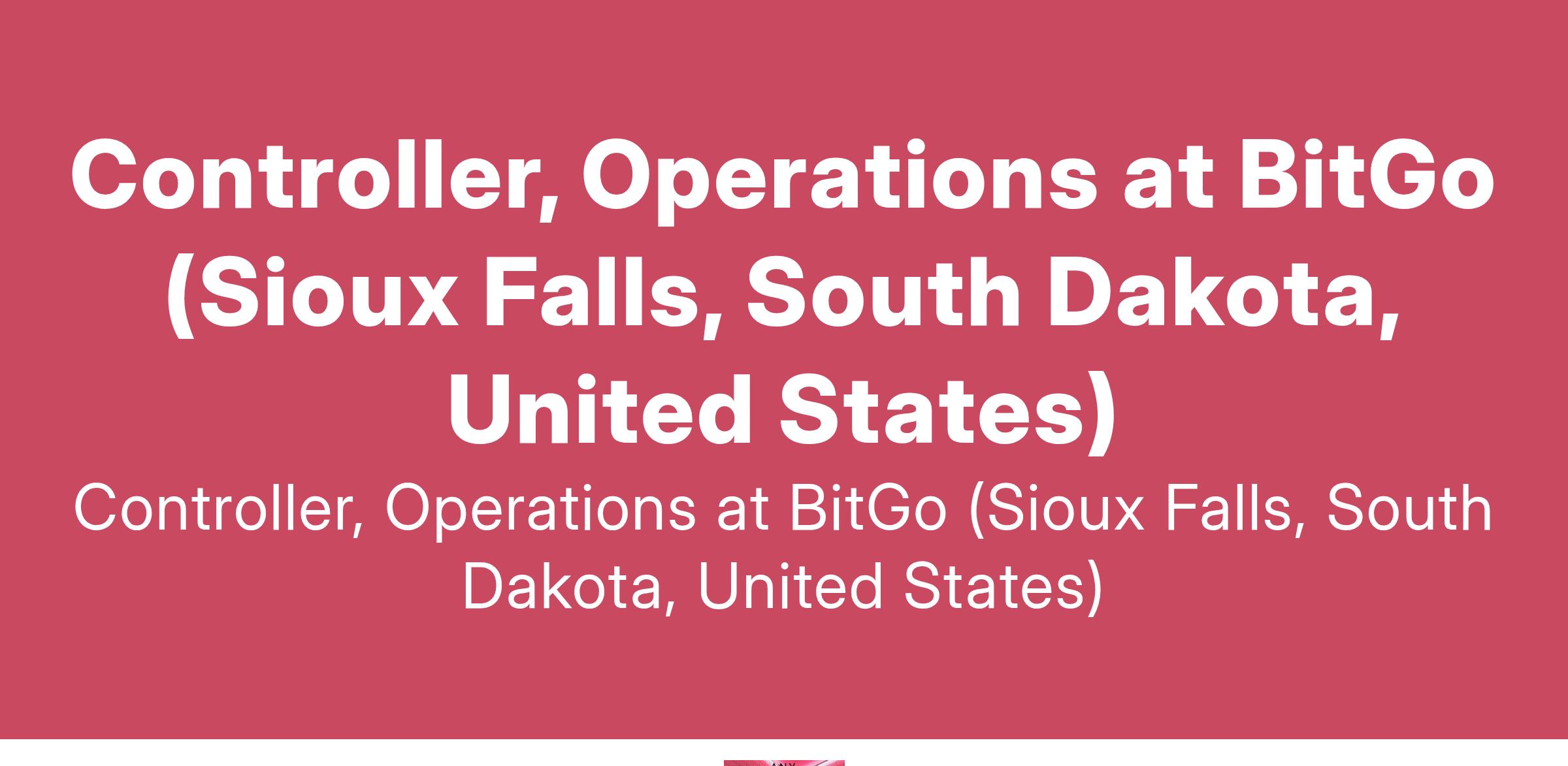 Controller, Operations at BitGo (Sioux Falls, South Dakota, United States)