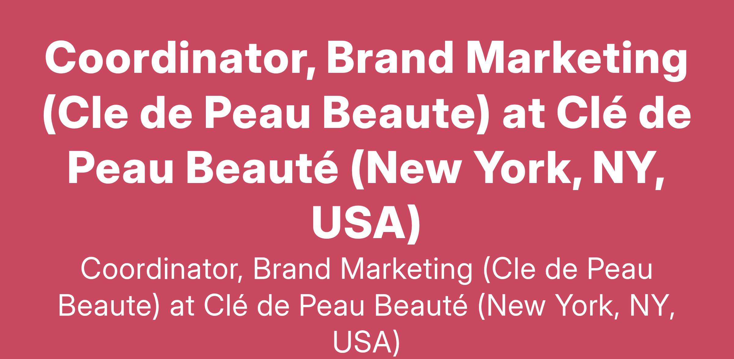 Coordinator, Brand Marketing (Cle de Peau Beaute) at Clé de Peau Beauté (New York, NY, USA)