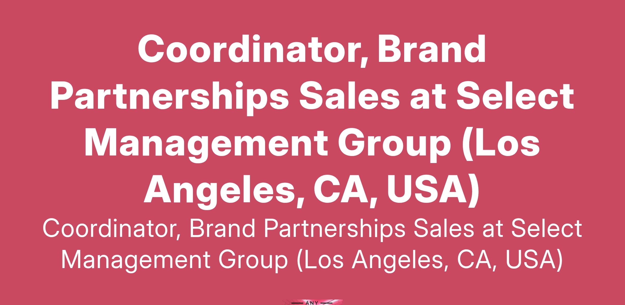 Coordinator, Brand Partnerships Sales at Select Management Group (Los Angeles, CA, USA)