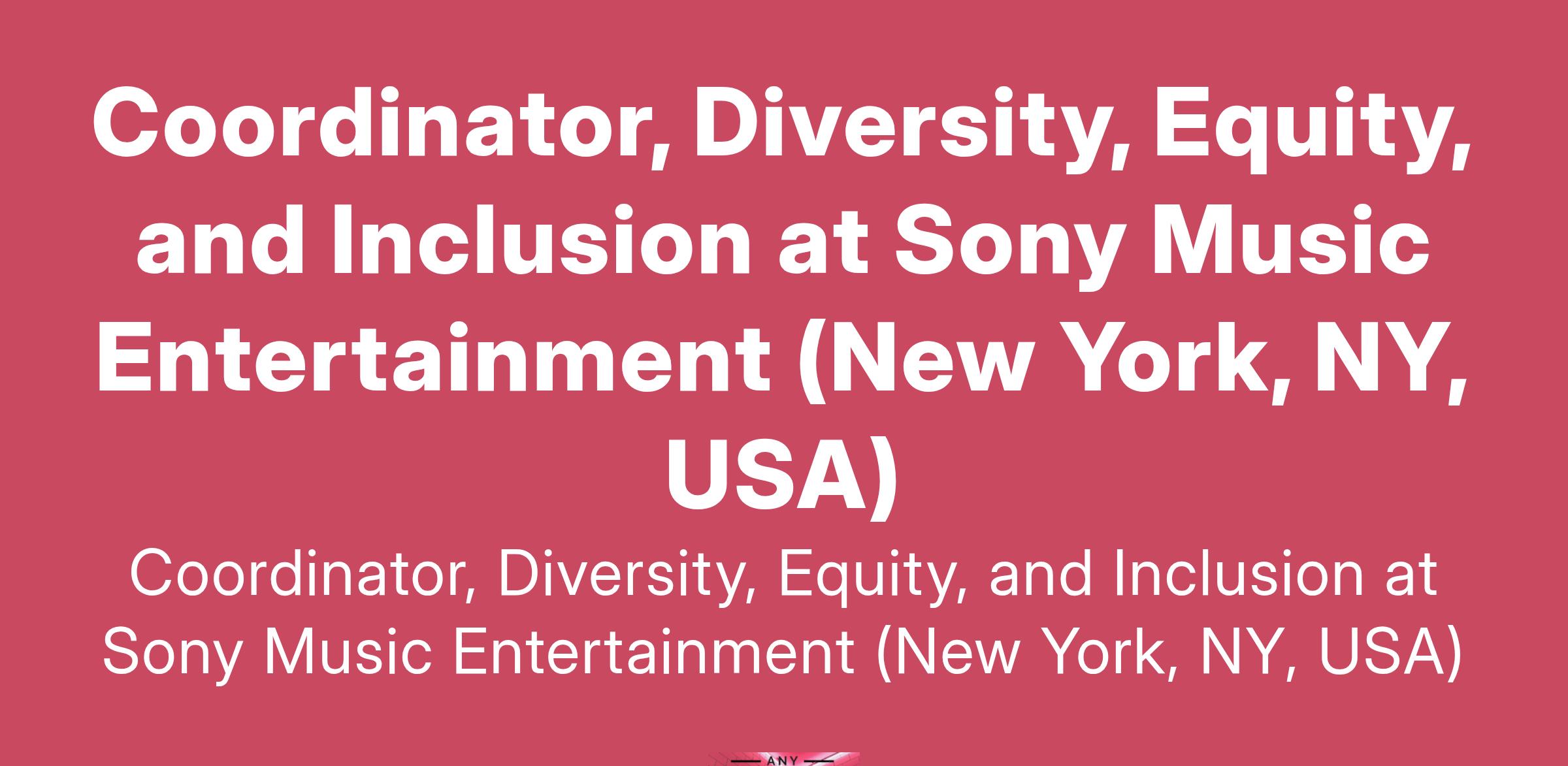 Coordinator, Diversity, Equity, and Inclusion at Sony Music Entertainment (New York, NY, USA)