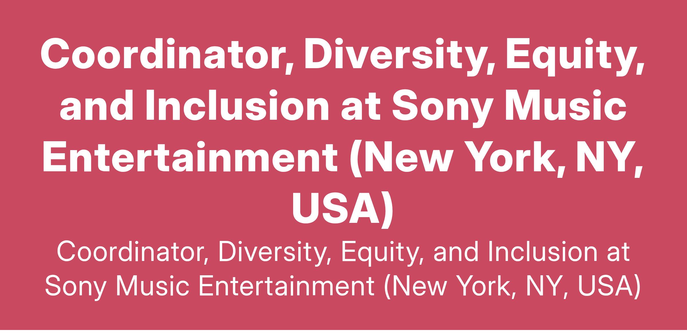 Coordinator, Diversity, Equity, and Inclusion at Sony Music Entertainment (New York, NY, USA)