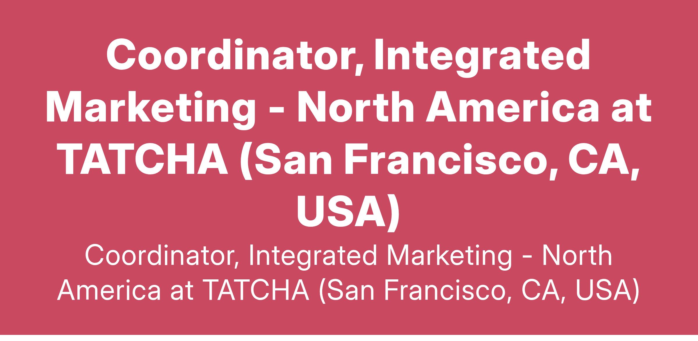 Coordinator, Integrated Marketing - North America at TATCHA (San Francisco, CA, USA)