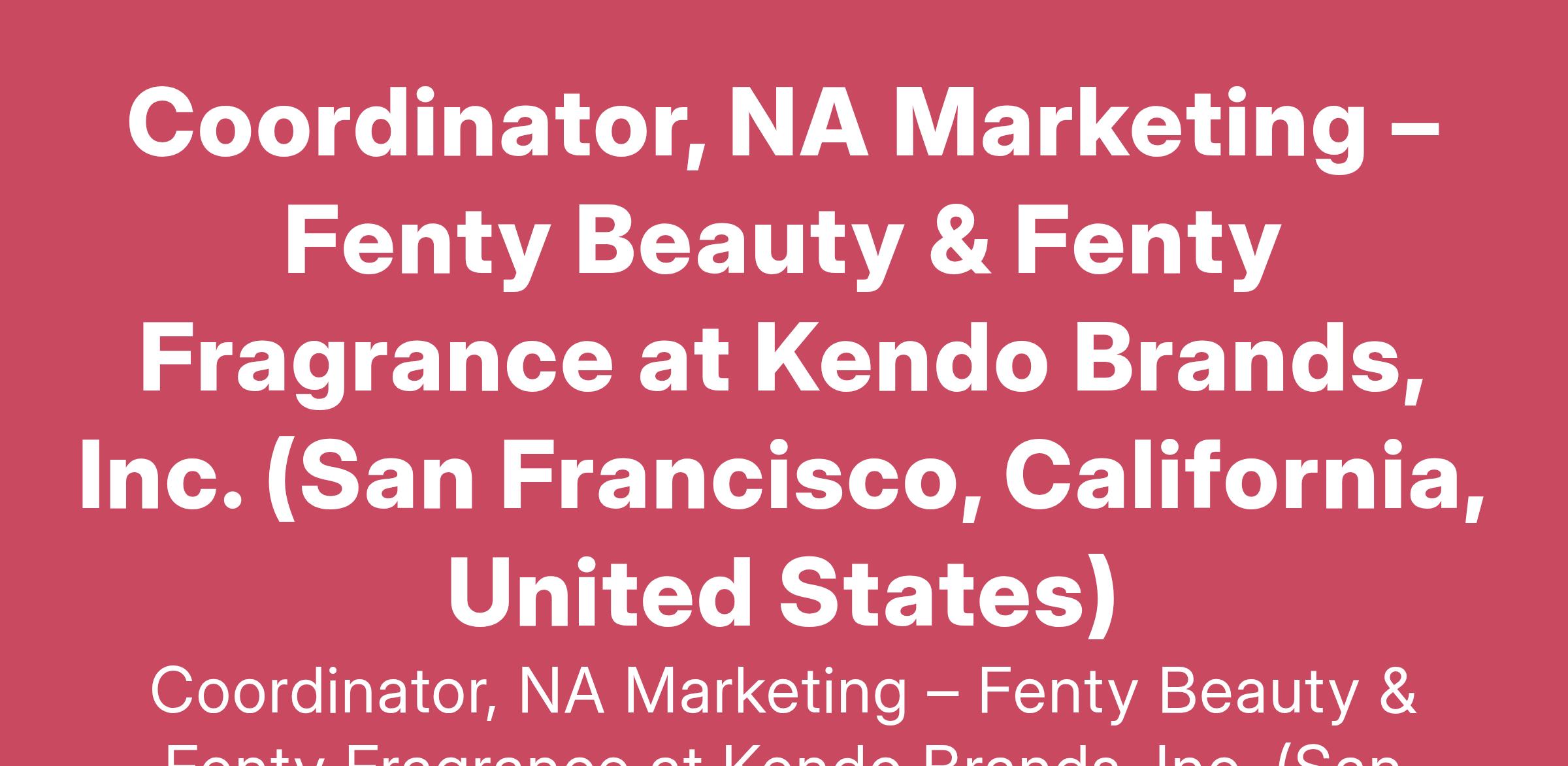 Coordinator, NA Marketing – Fenty Beauty & Fenty Fragrance at Kendo Brands, Inc. (San Francisco, California, United States)