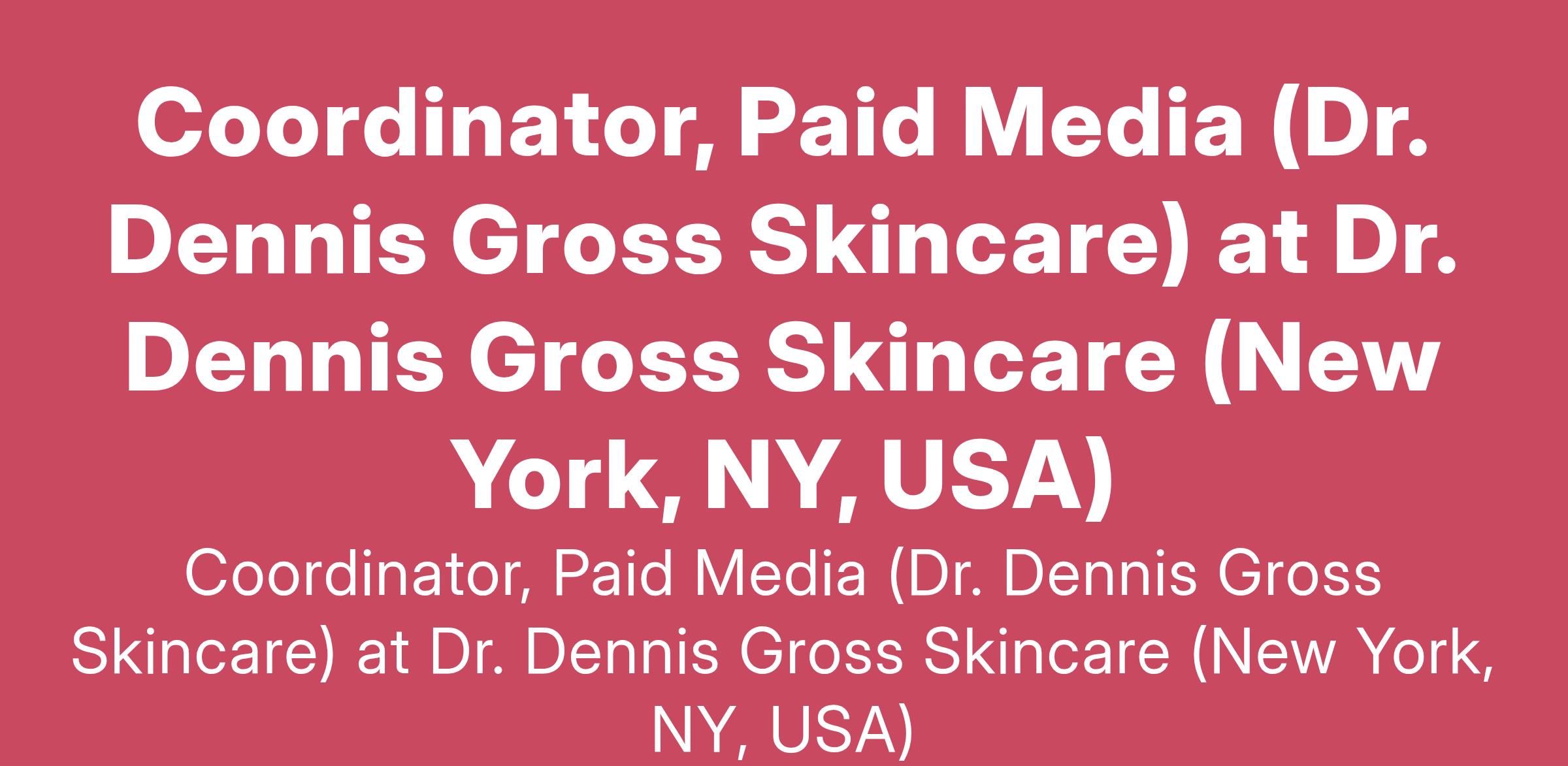 Coordinator, Paid Media (Dr. Dennis Gross Skincare) at Dr. Dennis Gross Skincare (New York, NY, USA)