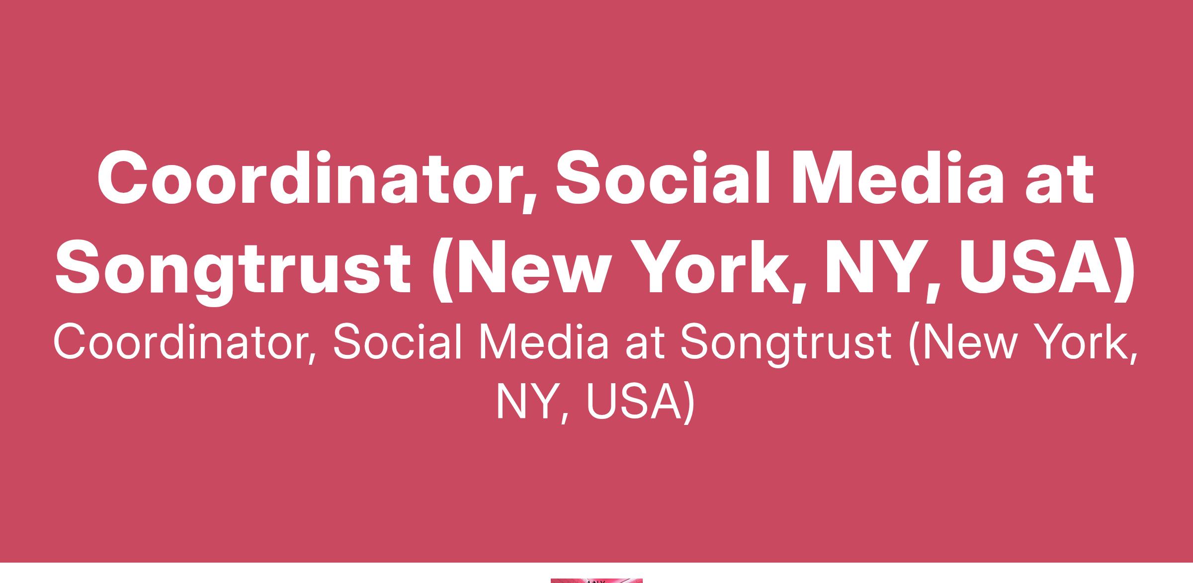 Coordinator, Social Media at Songtrust (New York, NY, USA)