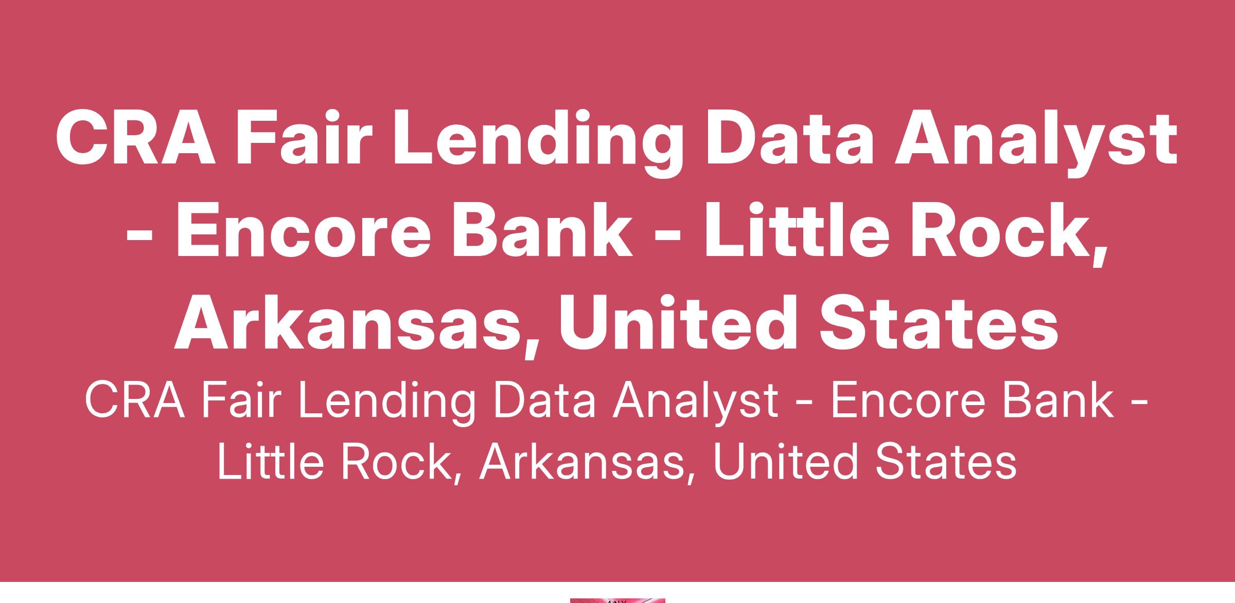 Encore Bank is an Equal Opportunity Employer. All qualified applicants will receive consideration without regard to race, color, religion, age, ancestry, citizenship, sex, sexual orientation, gender identity, national origin, marital status, genetic information, physical or mental disability, veteran status or any other characteristic protected by law.