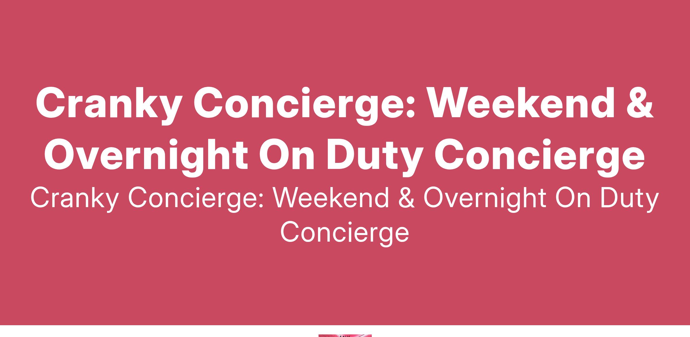 To apply: https://weworkremotely.com/remote-jobs/cranky-concierge-weekend-overnight-on-duty-concierge-1