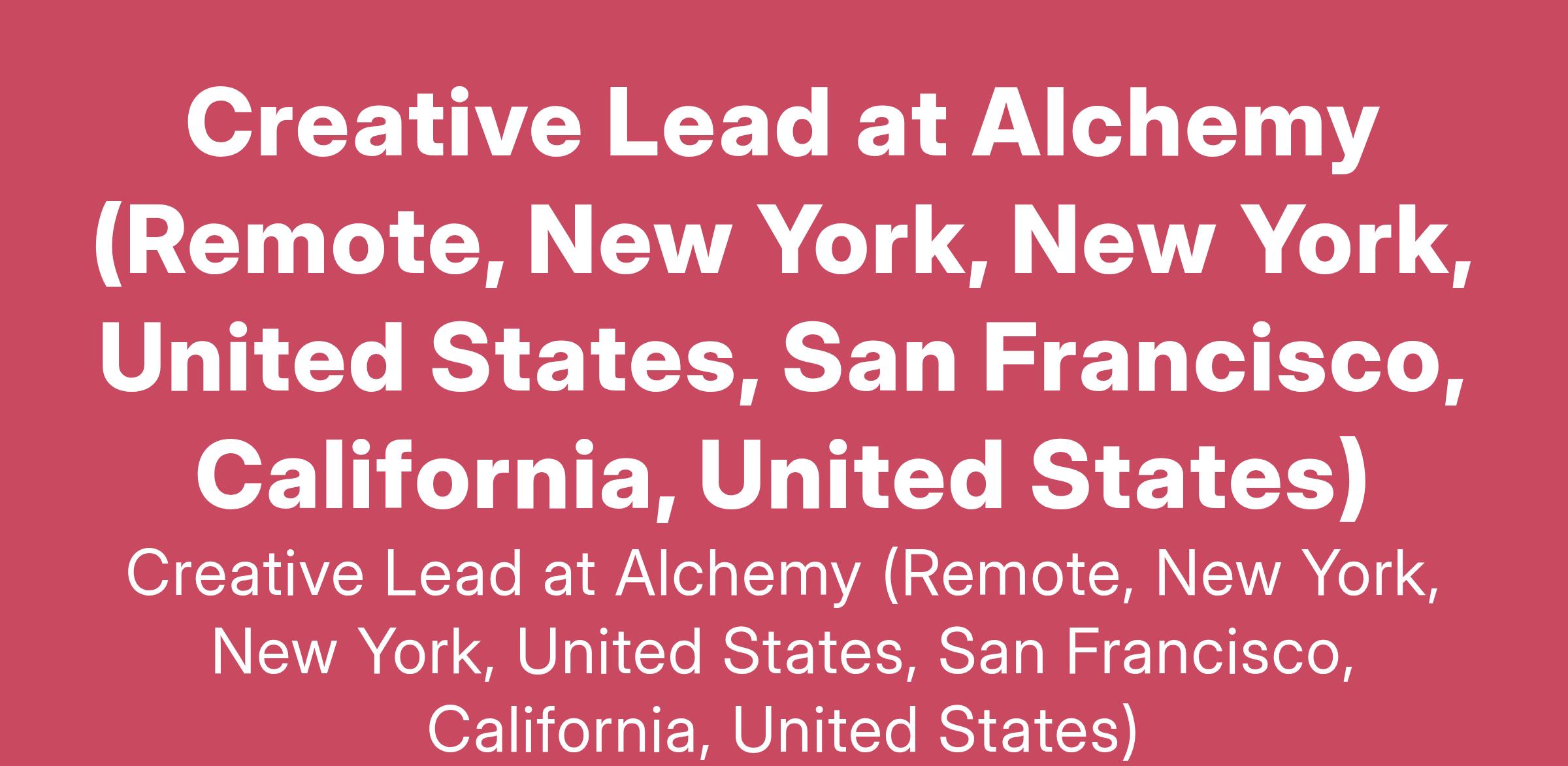 Creative Lead at Alchemy (Remote, New York, New York, United States, San Francisco, California, United States)