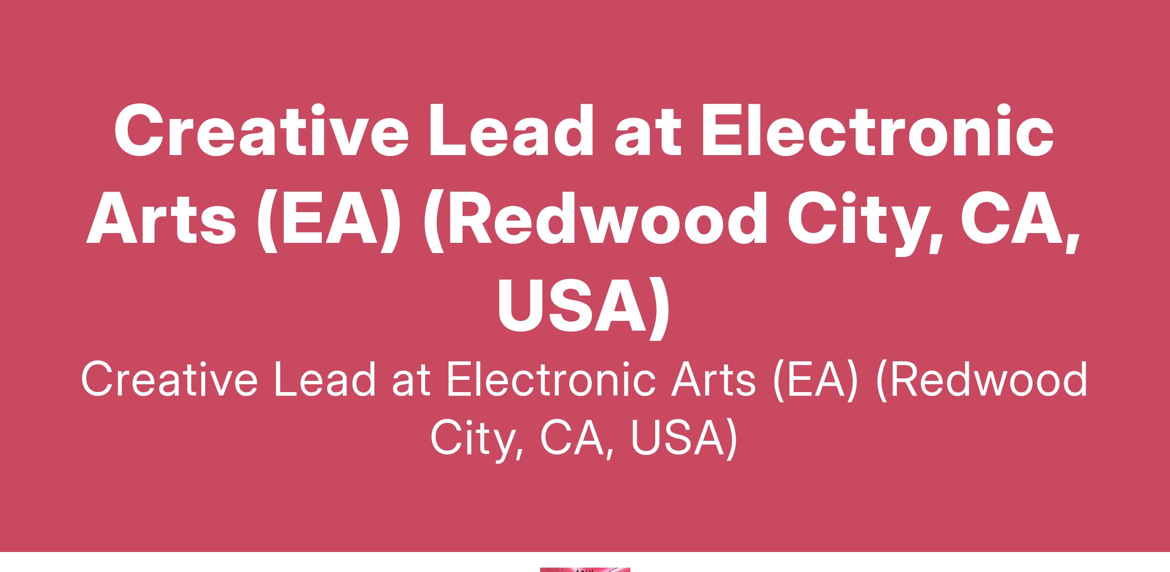 Creative Lead at Electronic Arts (EA) (Redwood City, CA, USA)