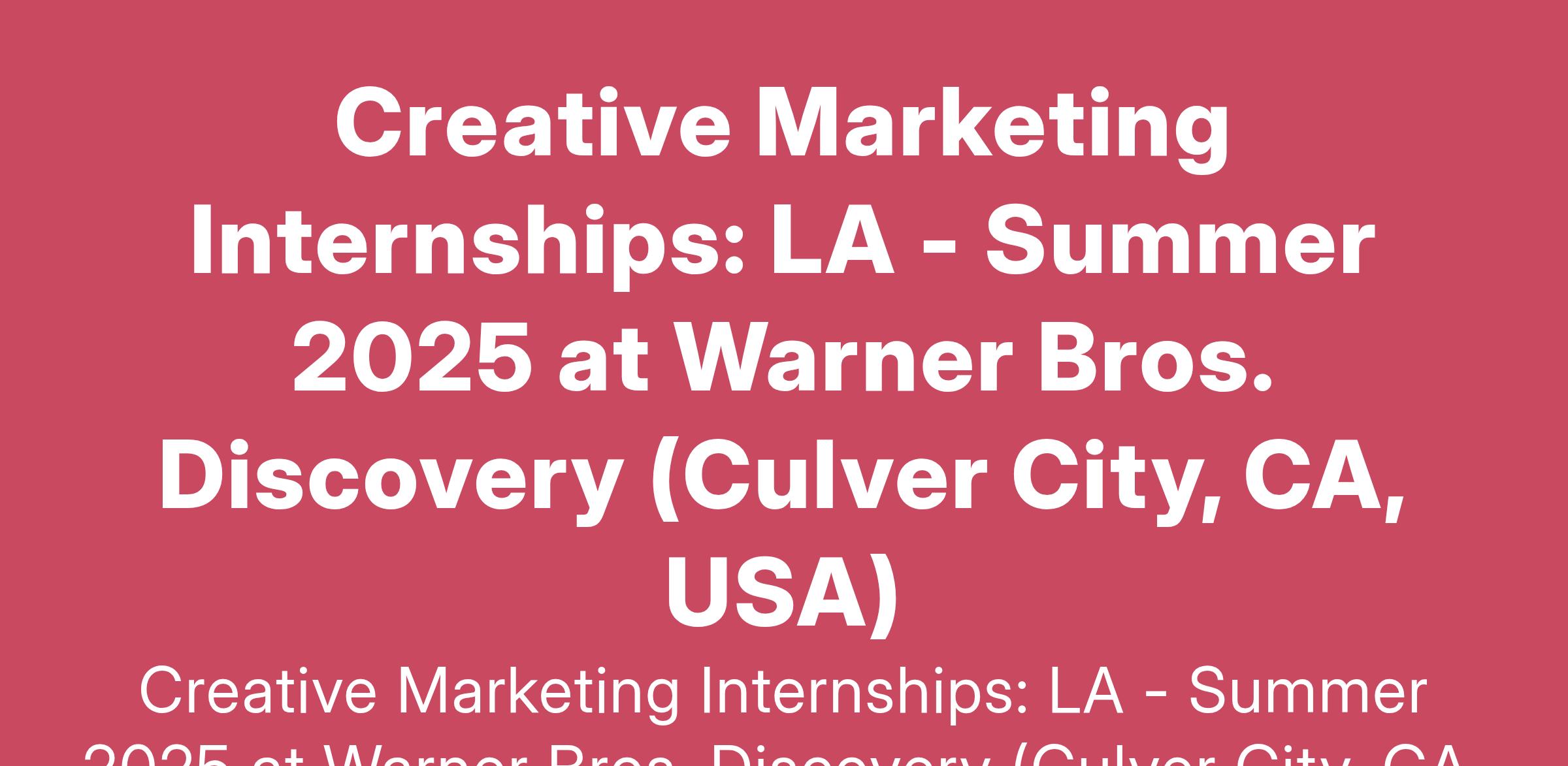 Creative Marketing Internships: LA - Summer 2025 at Warner Bros. Discovery (Culver City, CA, USA)