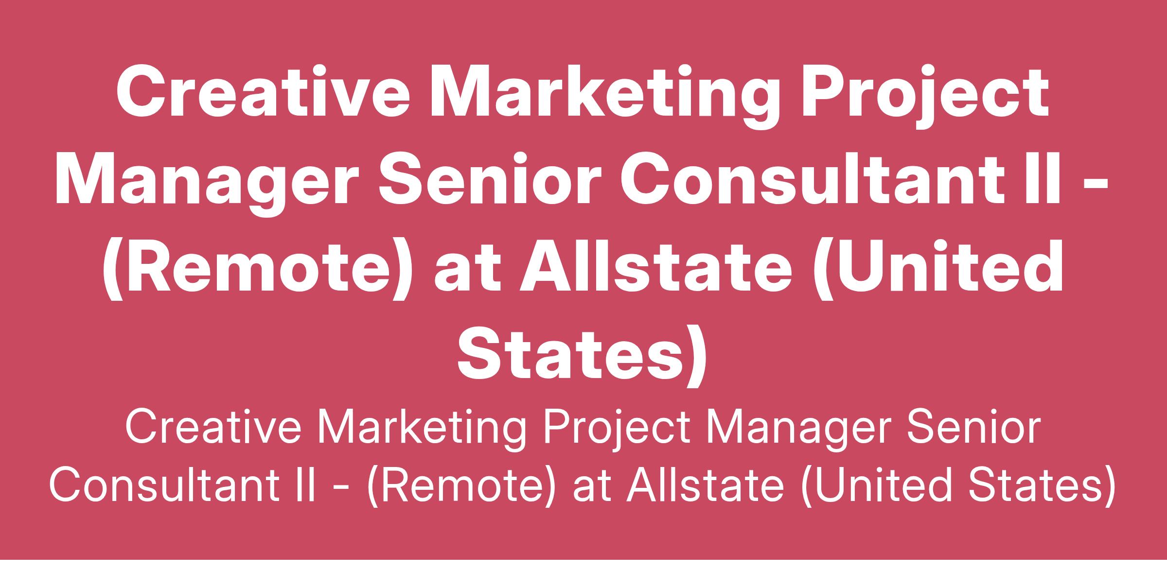 Creative Marketing Project Manager Senior Consultant II - (Remote) at Allstate (United States)