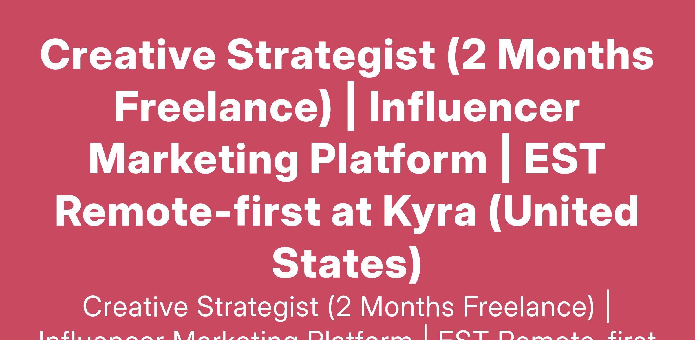 Creative Strategist (2 Months Freelance) | Influencer Marketing Platform | EST Remote-first at Kyra (United States)