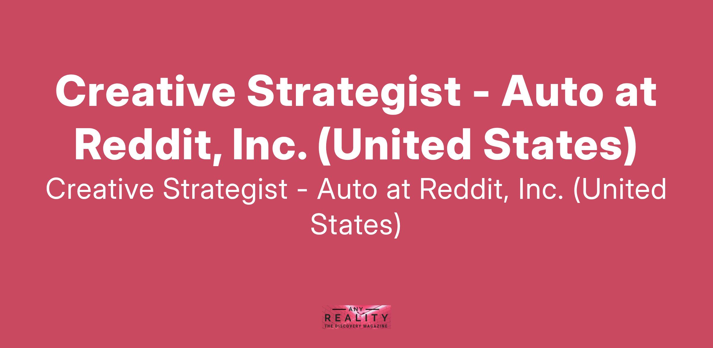 Creative Strategist - Auto at Reddit, Inc. (United States)