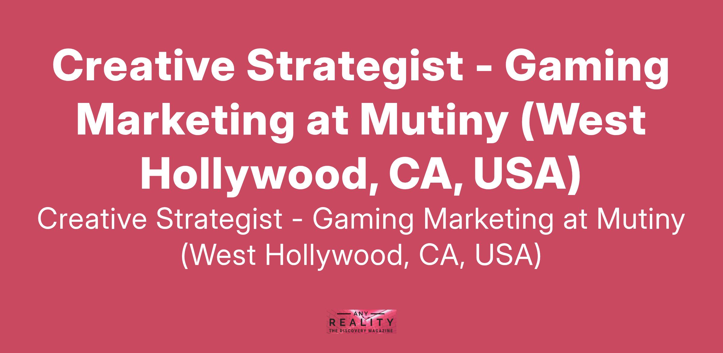 Creative Strategist - Gaming Marketing at Mutiny (West Hollywood, CA, USA)