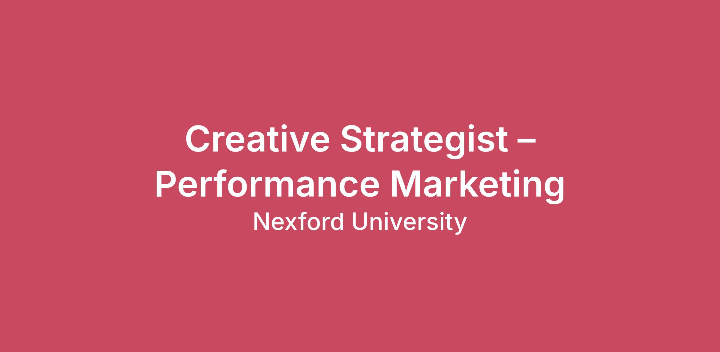 Role Overview The Creative Strategist – Performance Marketing owns the creative intelligence system that powers Nexford’s paid acquisition efforts across digital channels. As creative becomes the primary driver of performance, this role ensures that every creative asset is intentionally selected, strategically deployed, and continuously improved using data, audience insight, and funnel-stage objectives. This is not a design role and not a media buying role. It is a creative strategy and optimization role focused on building repeatable, insight-led creative systems that compound performance over time. The role sits within the Performance Marketing team and works closely with the Performance Marketing Executive, country teams, and central creative resources. Key Responsibilities Creative Strategy & System Ownership Own creative strategy for paid acquisition across platforms including Meta, LinkedIn, TikTok, Google, and test channels Develop, maintain, and evolve Nexford’s creative taxonomy across funnel stages, audiences, formats, and messaging angles Own a living ad guidelines document that is continuously updated based on performance learnings Ensure all creative selection is intentional and aligned to funnel stage and audience motivation Creative Intelligence, AI & Performance Translation Analyse creative performance data to identify patterns, drivers, and root causes of success Translate insights into clear creative hypotheses, concepts, and structured testing plans Use AI tools to accelerate analysis, asset review, tagging, insight extraction, and briefing processes Actively mine large video and image libraries to extract high-performing moments and assets for paid use Creative Development & Workflow Management Audit existing content from country teams and central marketing for paid performance suitability Produce clear, commercially grounded creative briefs informed by data and insight Manage creative workflows end-to-end including briefing, feedback, iteration, and delivery timelines Performance Collaboration & Optimization Partner closely with the Performance Marketing Executive to identify scalable concepts, iterate winners, and pause underperforming assets Monitor creative performance across platforms and ensure learnings feed directly into future production Consistency & Cross-Channel Alignment Ensure narrative and visual consistency across ads, landing pages, emails, and other learner touchpoints Maintain creative diversity without sacrificing strategic clarity or brand coherence Required Qualifications Experience working on multi-market campaigns is essential Experience in performance marketing, paid media, or a closely related role Strong understanding of how creative strategy influences performance outcomes Proven ability to analyse data and translate insights into creative direction Hands-on experience using AI tools to improve efficiency, scale learning, or systematise workflows Experience working cross-functionally with creative, marketing, and regional teams Preferred Qualifications Familiarity with in-platform creative optimization frameworks Ability to make light creative edits using AI-enabled tools Experience operating in fast-paced or high-growth environments Key Competencies Systems and strategic thinking Strong analytical and performance mindset High attention to detail and creative intentionality Clear written and verbal communication Role Fit This role is ideal for someone who thrives at the intersection of data, creativity, and execution, and who is motivated by building repeatable systems rather than relying on one-off wins.LocationLondon, Glasgow City (Remote)DepartmentGrowth MarketingEmployment TypeEmployee F/TMinimum ExperienceMid-level