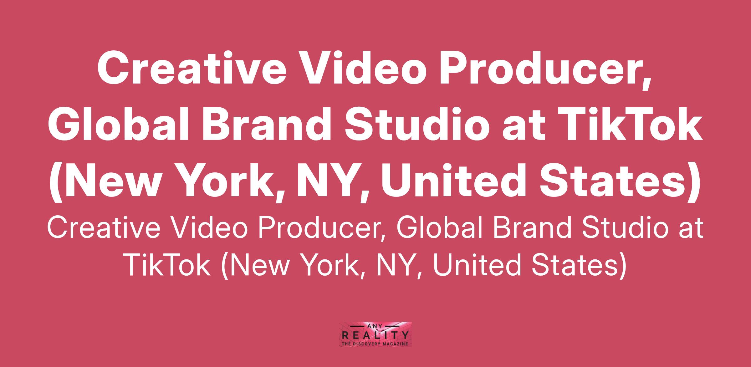 Creative Video Producer, Global Brand Studio at TikTok (New York, NY, United States)