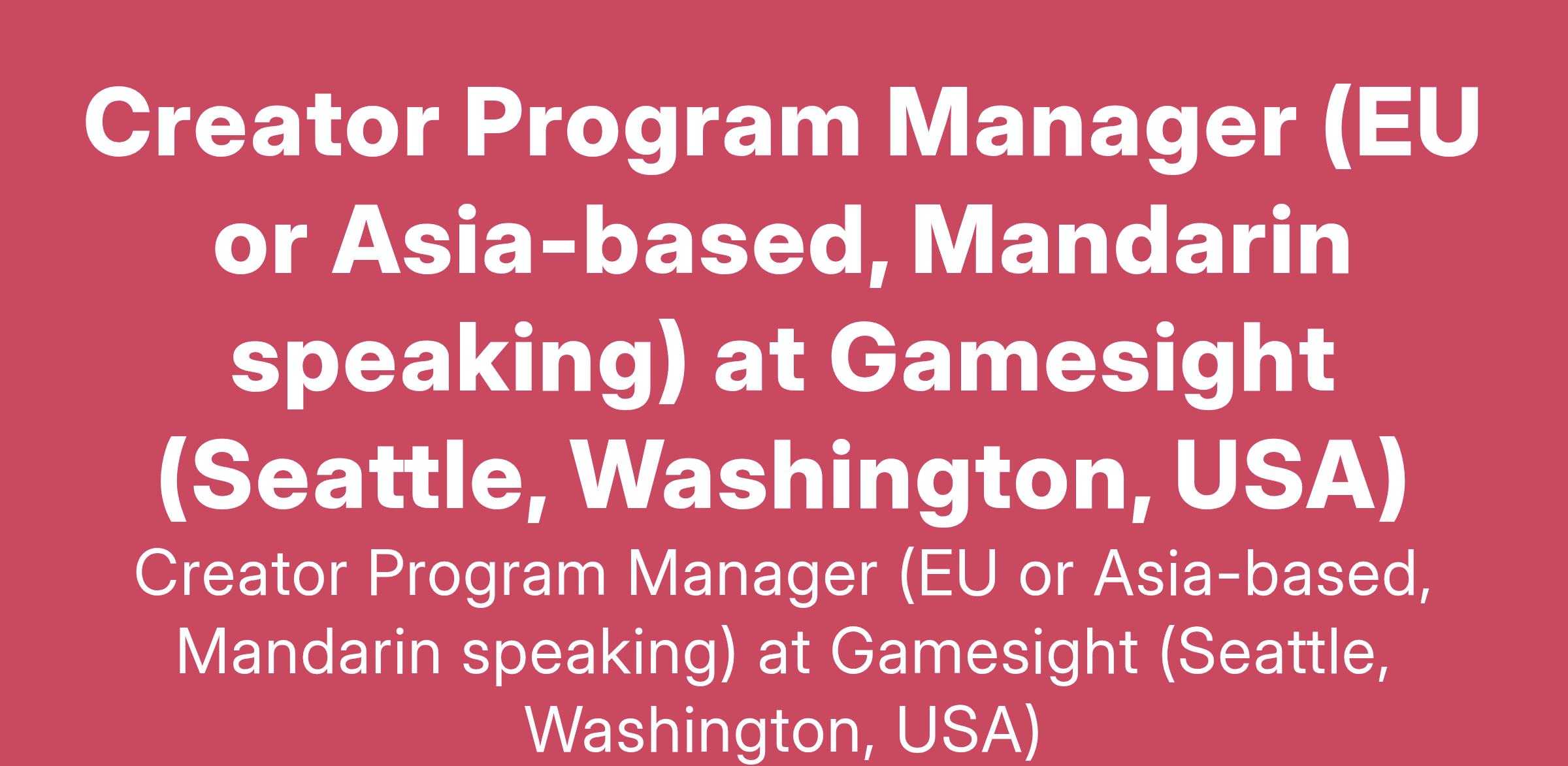Creator Program Manager (EU or Asia-based, Mandarin speaking) at Gamesight (Seattle, Washington, USA)