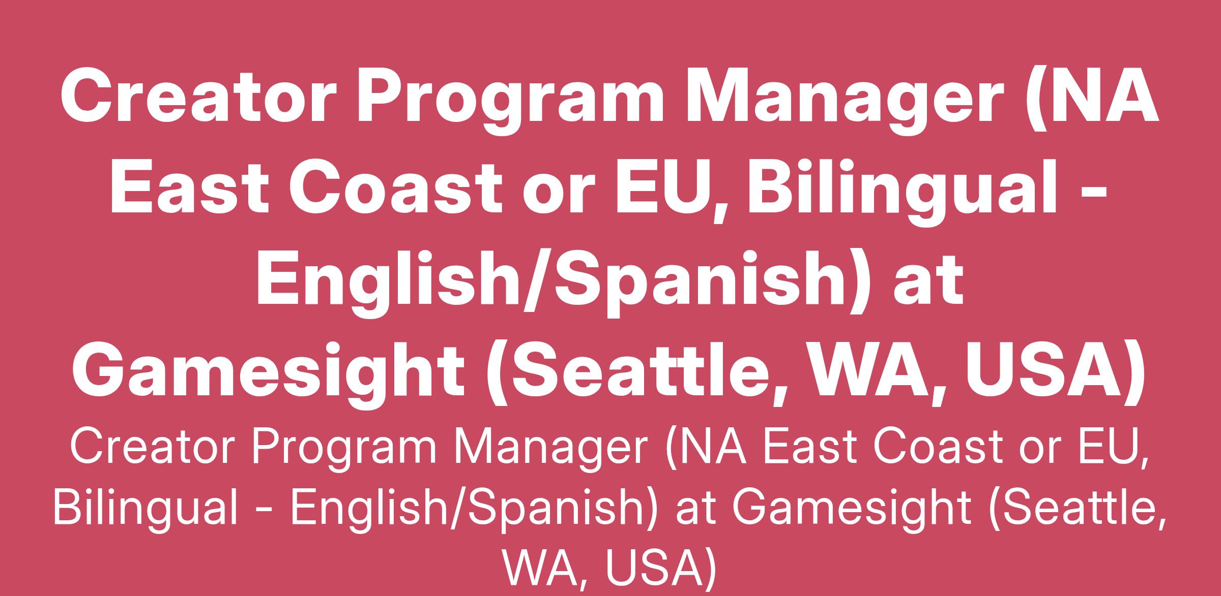 Creator Program Manager (NA East Coast or EU, Bilingual - English/Spanish) at Gamesight (Seattle, WA, USA)