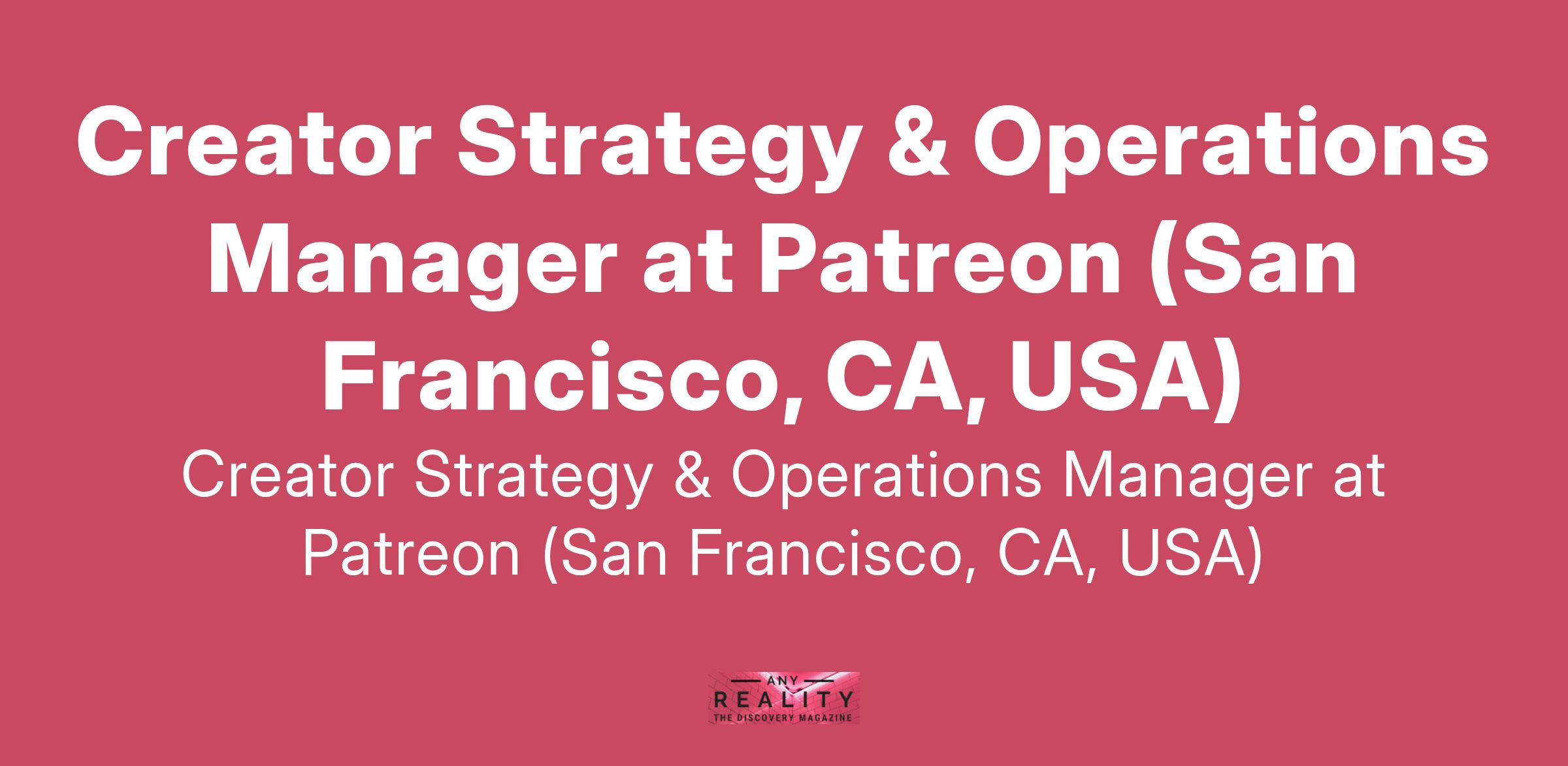 Creator Strategy & Operations Manager at Patreon (San Francisco, CA, USA)
