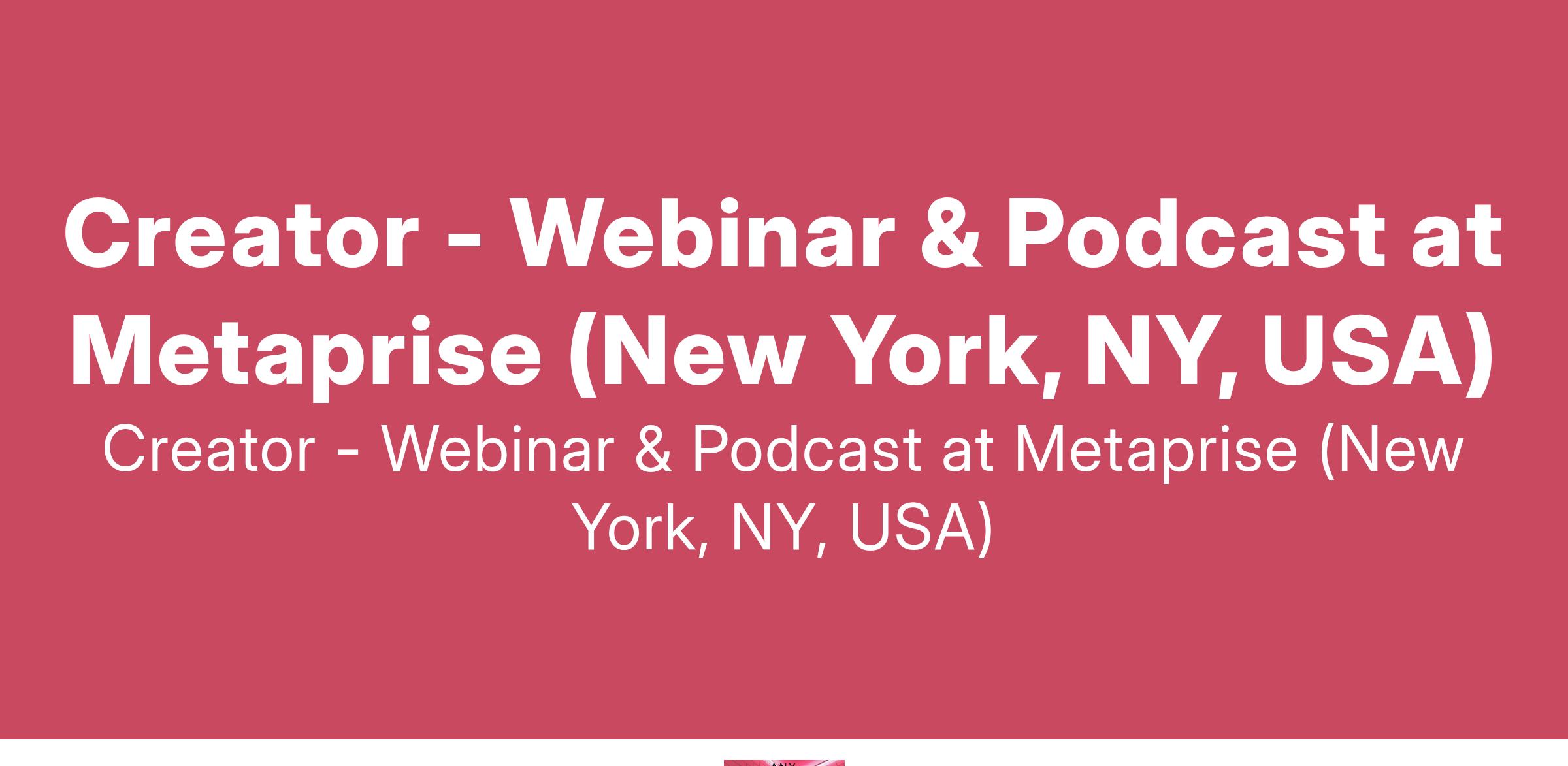 Creator - Webinar & Podcast at Metaprise (New York, NY, USA)