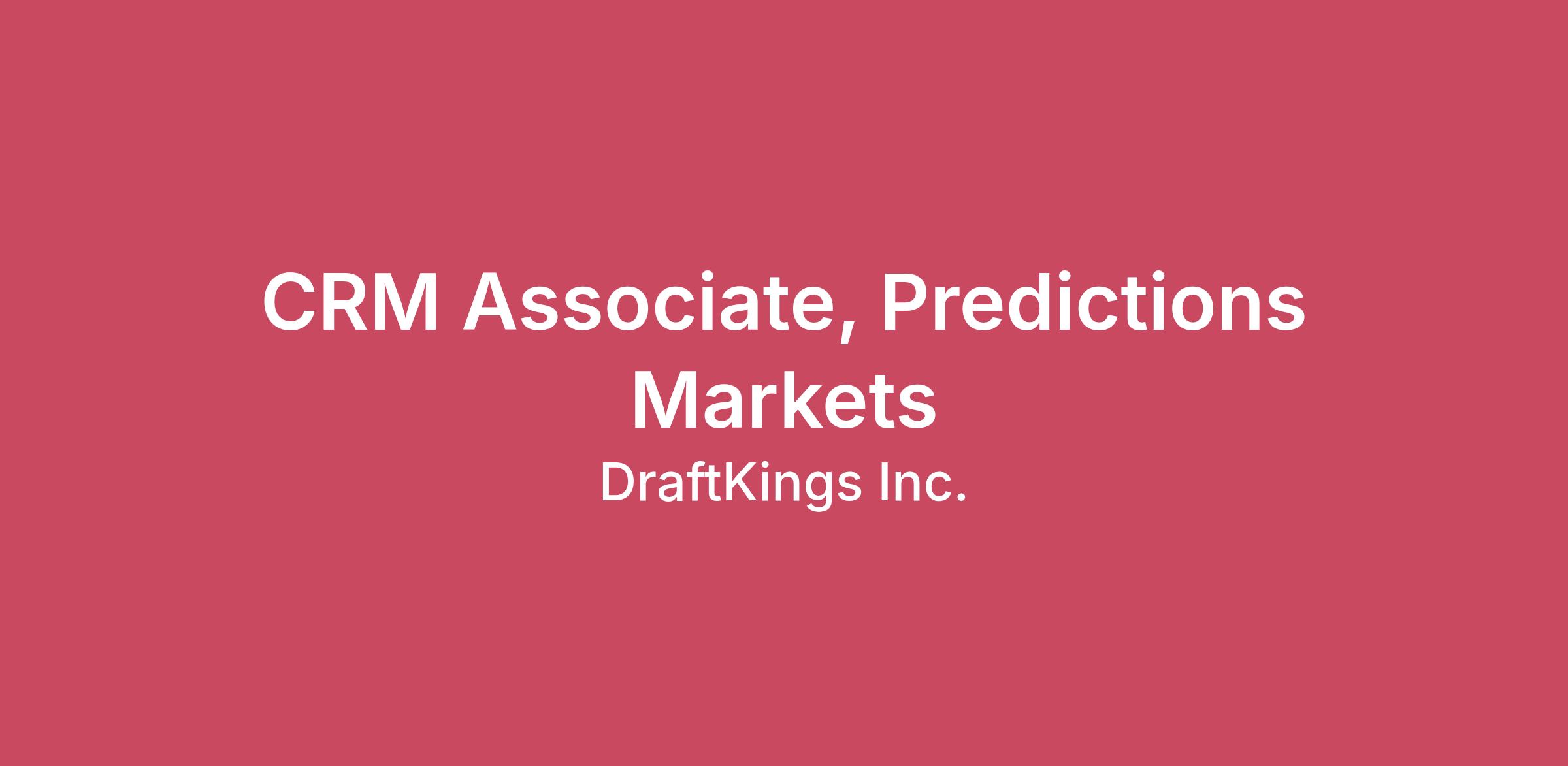 Join a fast-moving team at the forefront of sports and entertainment where you'll help shape dynamic, data-informed marketing campaigns for DraftKings Predictions. As a CRM Associate, you'll manage campaign execution, partner closely with teams across Analytics, Product, and Engineering, and play a key role in delivering an exceptional customer experience.