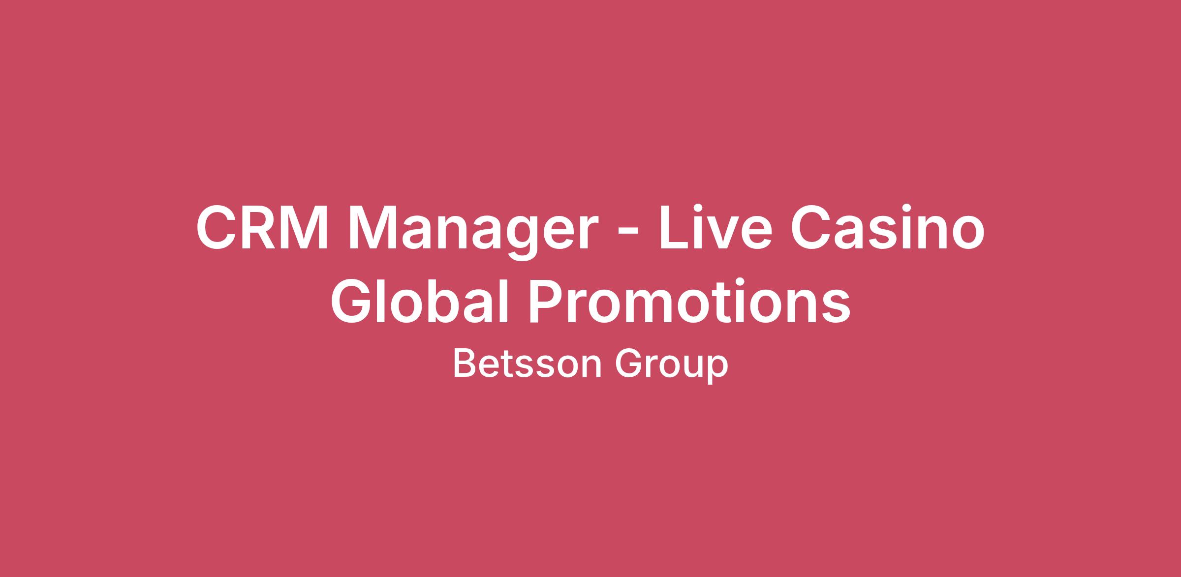 Excellent opportunity to join Betsson Group as our new CRM Manager - Live Casino Global Promotions.