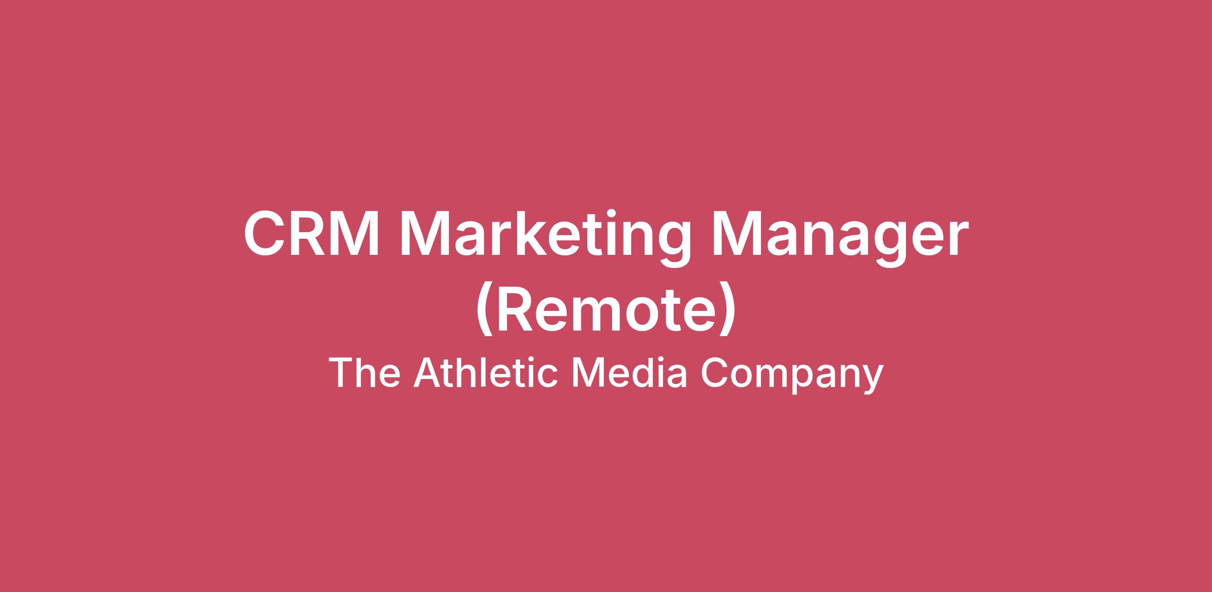 About UsPowered by one of the largest global newsrooms in sports media, The Athletic brings sports fans the most comprehensive stories about the teams, sports and athletes they love. The Athletic’s newsroom of 500+ full-time staff delivers in-depth coverage of hundreds of professional and college teams across more than 47 North American markets and all 20 football clubs in the English Premier League, as well as many Championship clubs.About the RoleThe Athletic is seeking a CRM Marketing Manager to own the end-to-end execution of high-impact campaigns focused on engaging, retaining, and converting our readers. This role will manage the full process from audience segmentation and campaign build to QA, deployment, and monitoring. The ideal candidate is a customer-centric, technically-minded, detail-oriented marketer who can balance manual production needs with a vision for modernizing our workflows through AI and automation.\nResponsibilitiesLead the end-to-end execution of programs that build relationships with our readers, develop habitual engagement, and drive subscription starts across email, push, and in-app channels.Implement new opportunities for automation and personalization through journey building, audience segmentation, and testing roadmaps.Experiment with AI-forward workflows and ESP-specific automation to make campaign builds faster, smarter, and more efficient.Assist in managing overall email list health and protecting domain reputation/deliverability across all email efforts.Drive continuous improvement of business and team channel-specific KPIs, maintaining a clear project process plan and documenting best practices.Communicate proactively and clearly with business leaders and stakeholders about execution, and performance tracking to plan.Partner with Design to audit and ensure existing emails are optimized as well as build new and innovative templates for campaigns & workflows.Collaborate with Analytics, Product, Marketing, Design, Data Science and Engineering on email and push execution and testing as well as new omni-channel technical integrations.Requirements3+ years experience planning, executing, and analyzing marketing automation campaigns, with a strong focus on email marketing.A self-starting, “execution-first” attitude with the confidence to make data-driven recommendations and a desire to own the operational process.Ability to build and manage complex audience segmentation, eligibility rules and suppressions logic to ensure consistent and reliable targeting.Proven experience in an email/CRM management function.Hands-on experience with enterprise-level CRM platforms (e.g., Iterable, Braze, Sailthru, etc.) and a working knowledge of HTML.Superior project management and communication skills with the ability to balance rigorous attention to detail with swift execution across a variety of initiatives. Strong analytical skills; able to create impactful marketing campaigns. Experience with A/B testing, messaging, and post-campaign analysis.Interest in sports, tech, and media is preferred, but not required.Bachelor’s degree or equivalent professional experience.\nThe annual base salary range for this role is $75,000- $92,000K USD The total compensation offered for this position may vary based on factors such as education, experience, skills, and location. It may also include non-cash rewards and benefits. The base salary range is subject to change and may be modified in the future.The Athletic offers unique perks and benefits to all full-time employees based on their country of residence. Our comprehensive US benefits package includes:- Highly competitive, employer-contributed medical, dental, vision, basic life and disability insurance plans.- Savings accounts for medical, wellness, and childcare expenses.- 401k retirement savings plan and employer match.- Paid time off including paid sick leave, 12 paid holidays, 15 days of accrued vacation to start, and up to 20 weeks of Paid Parental Leave.For international candidates: Our global benefits packages offer similar benefits and perks, competitive to the local market.The Athletic Media Company is an equal opportunity employer and enthusiastically encourages people from all backgrounds and experiences to apply. The Athletic will consider all applicants without regard to race, religion, color, national origin, ancestry, physical and/or mental disability, medical condition, genetic information, marital status, sex, gender, gender identity, gender expression, transgender status, age, sexual orientation, military or veteran status, or any other protected characteristic under applicable law.Click here to review our Applicant Privacy Notice, which describes how and when The Athletic Media Company collects, uses, and shares certain personal information of job applicants and prospective employees.Beware of fraudulent job recruiting schemes! Our recruiters use careers@theathletic.com exclusively, and our team members will use an email address with @theathletic.com domain. We do not conduct interviews via text or instant message and we do not ask candidates to download software, to purchase equipment through us, or to provide sensitive personally identifiable information, such as bank accounts or social security numbers. If you have been contacted by someone claiming to be a member of the recruiting/HR team at The Athletic but operating from a different email address about a job offer, please report it as potential job fraud to the law enforcement and to people@theathletic.com.
