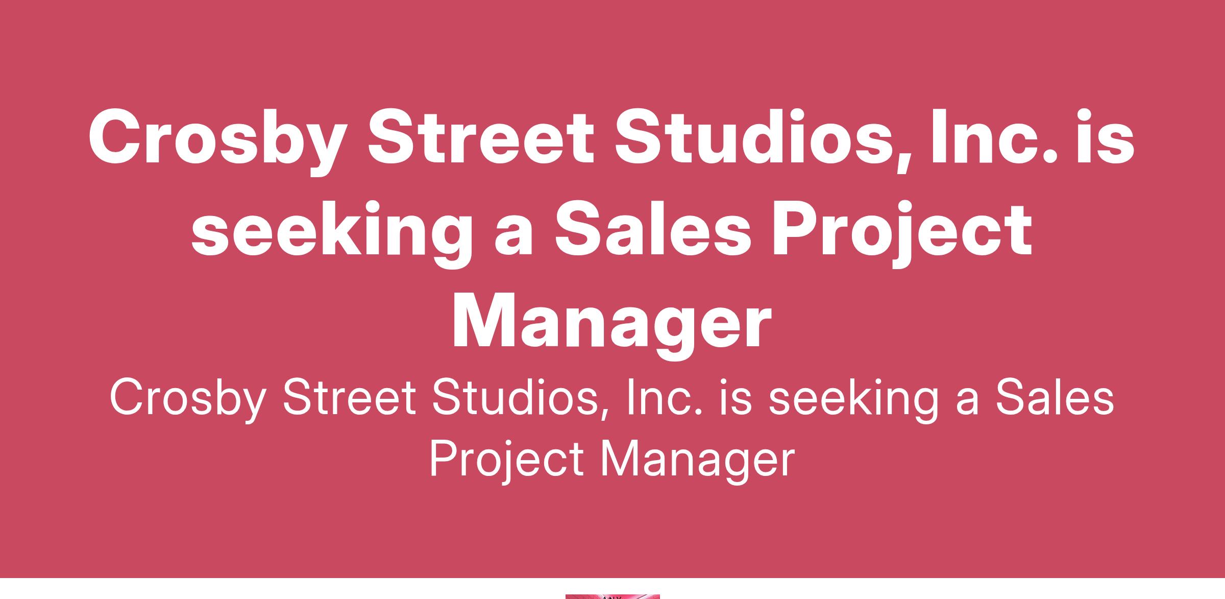 Crosby Street Studios, Inc. is seeking a Sales Project Manager