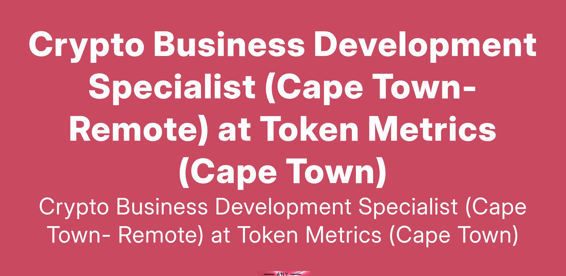 Crypto Business Development Specialist (Cape Town- Remote) at Token Metrics (Cape Town)