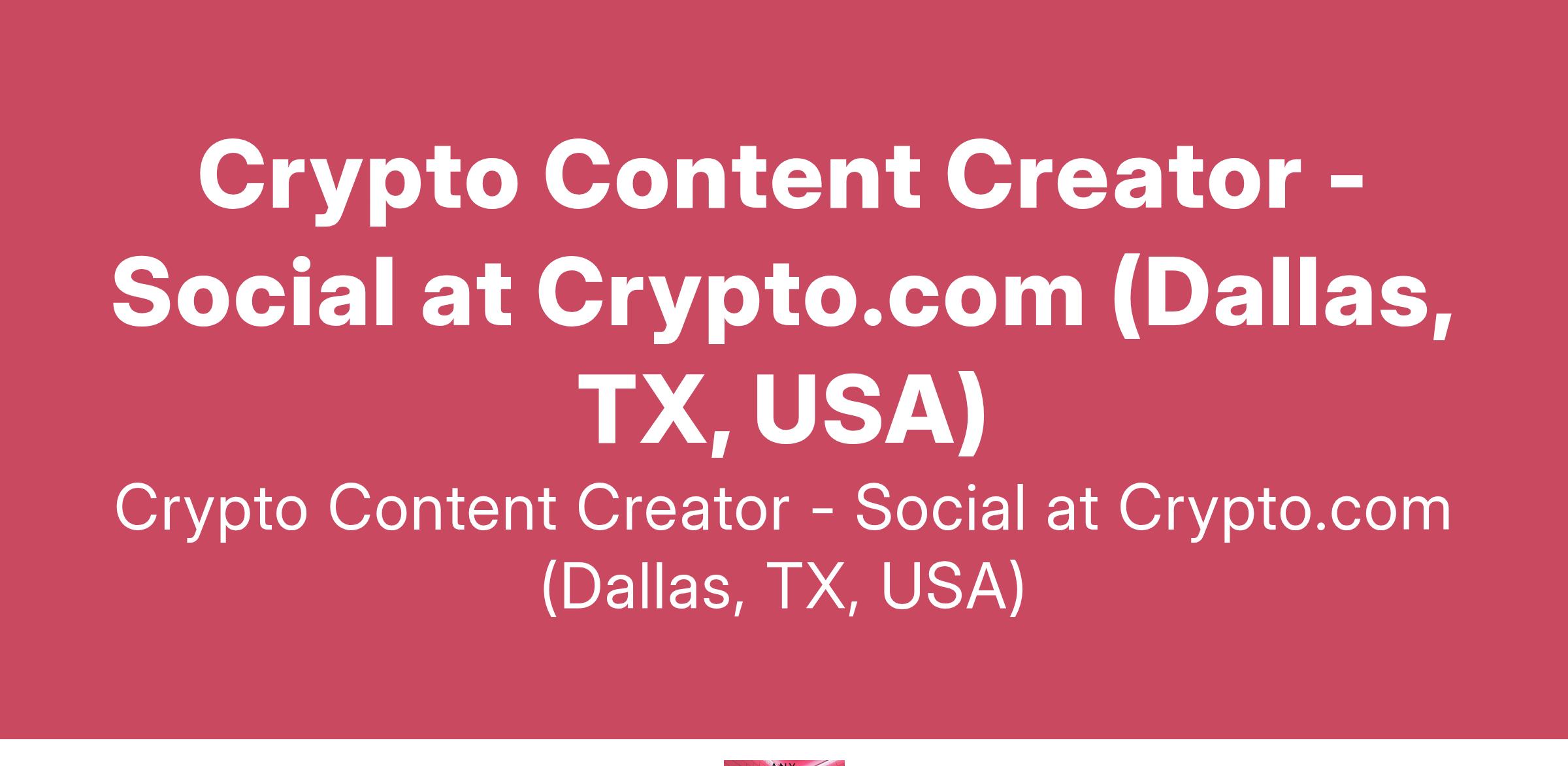 Crypto Content Creator - Social at Crypto.com (Dallas, TX, USA)