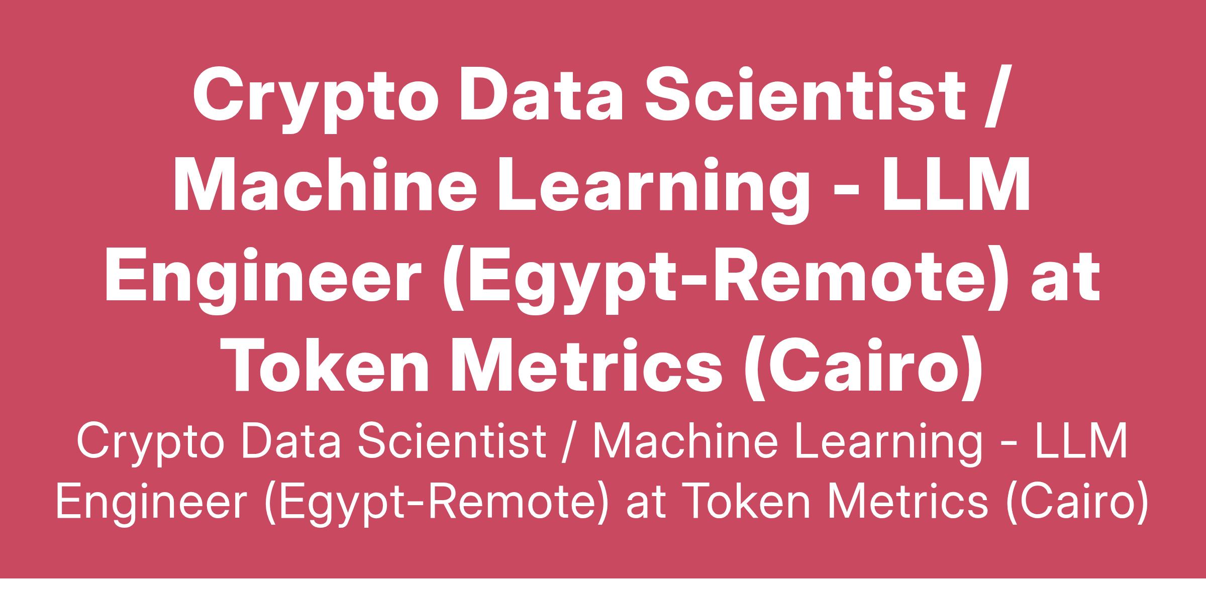 Crypto Data Scientist / Machine Learning - LLM Engineer (Egypt-Remote) at Token Metrics (Cairo)