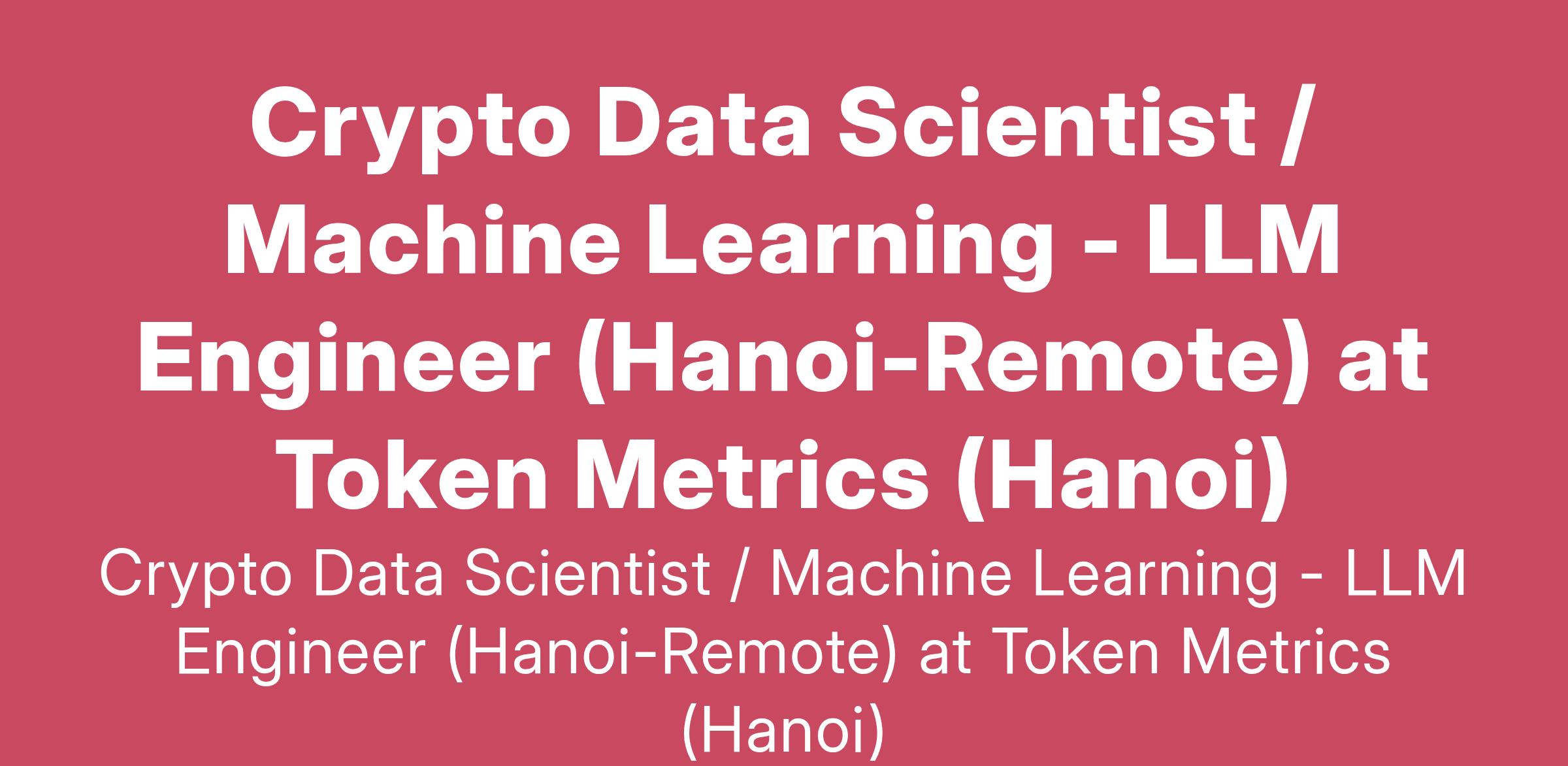 Crypto Data Scientist / Machine Learning - LLM Engineer (Hanoi-Remote) at Token Metrics (Hanoi)