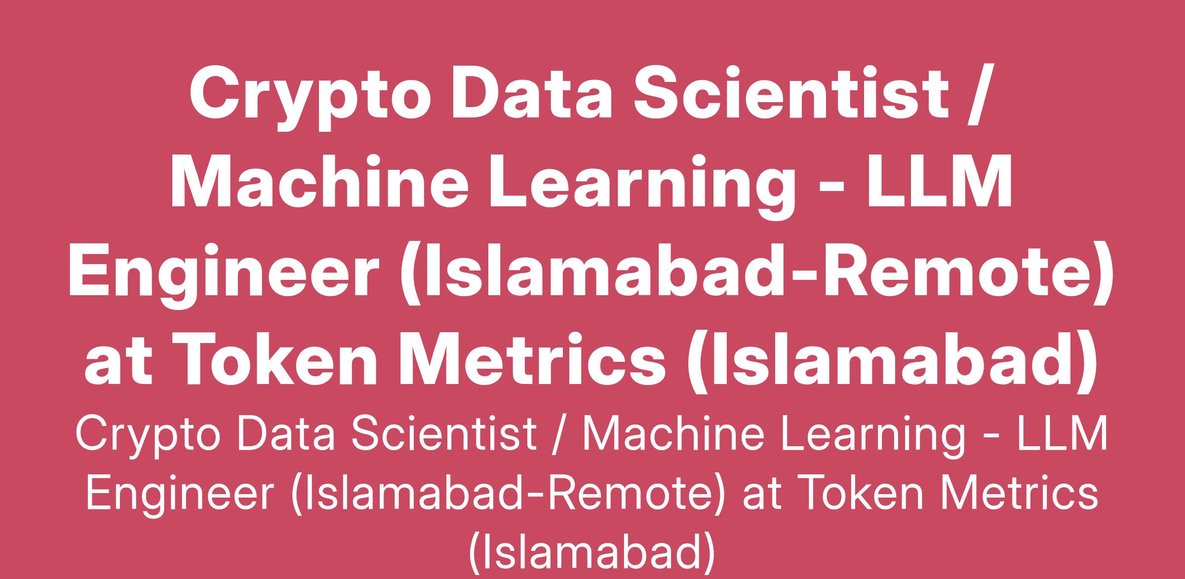 Crypto Data Scientist / Machine Learning - LLM Engineer (Islamabad-Remote) at Token Metrics (Islamabad)