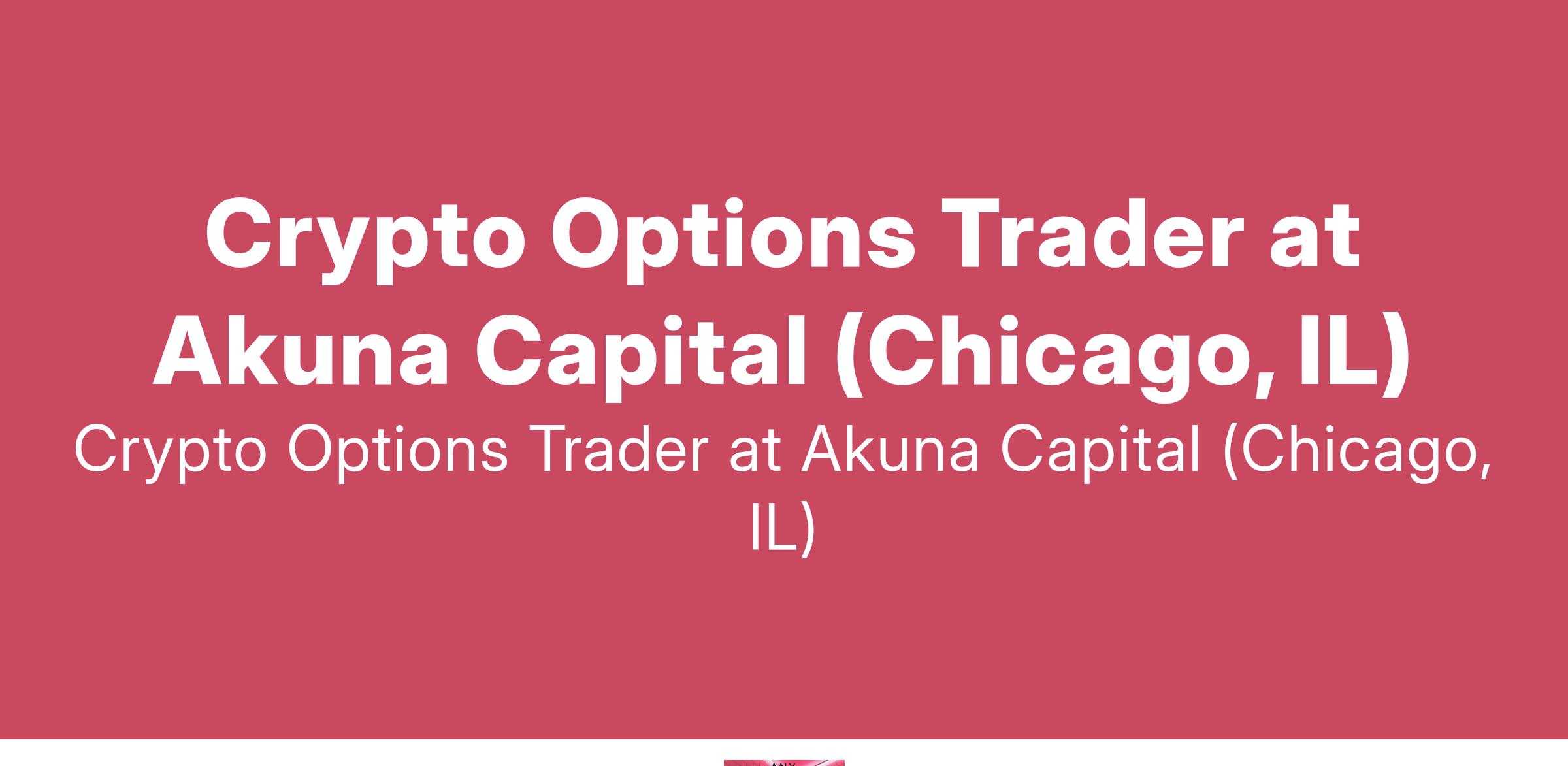 Crypto Options Trader at Akuna Capital (Chicago, IL)