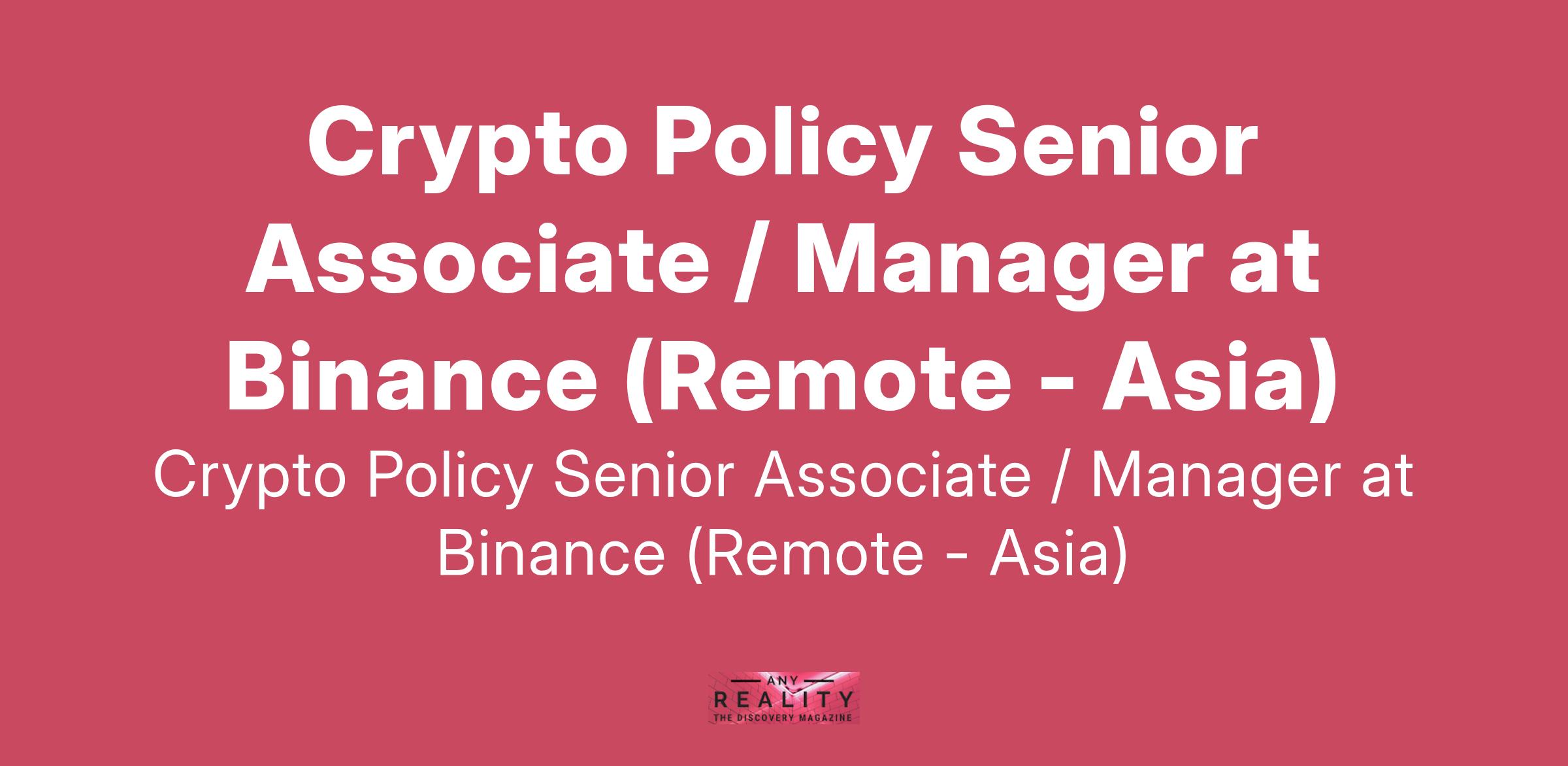 Crypto Policy Senior Associate / Manager at Binance (Remote - Asia)
