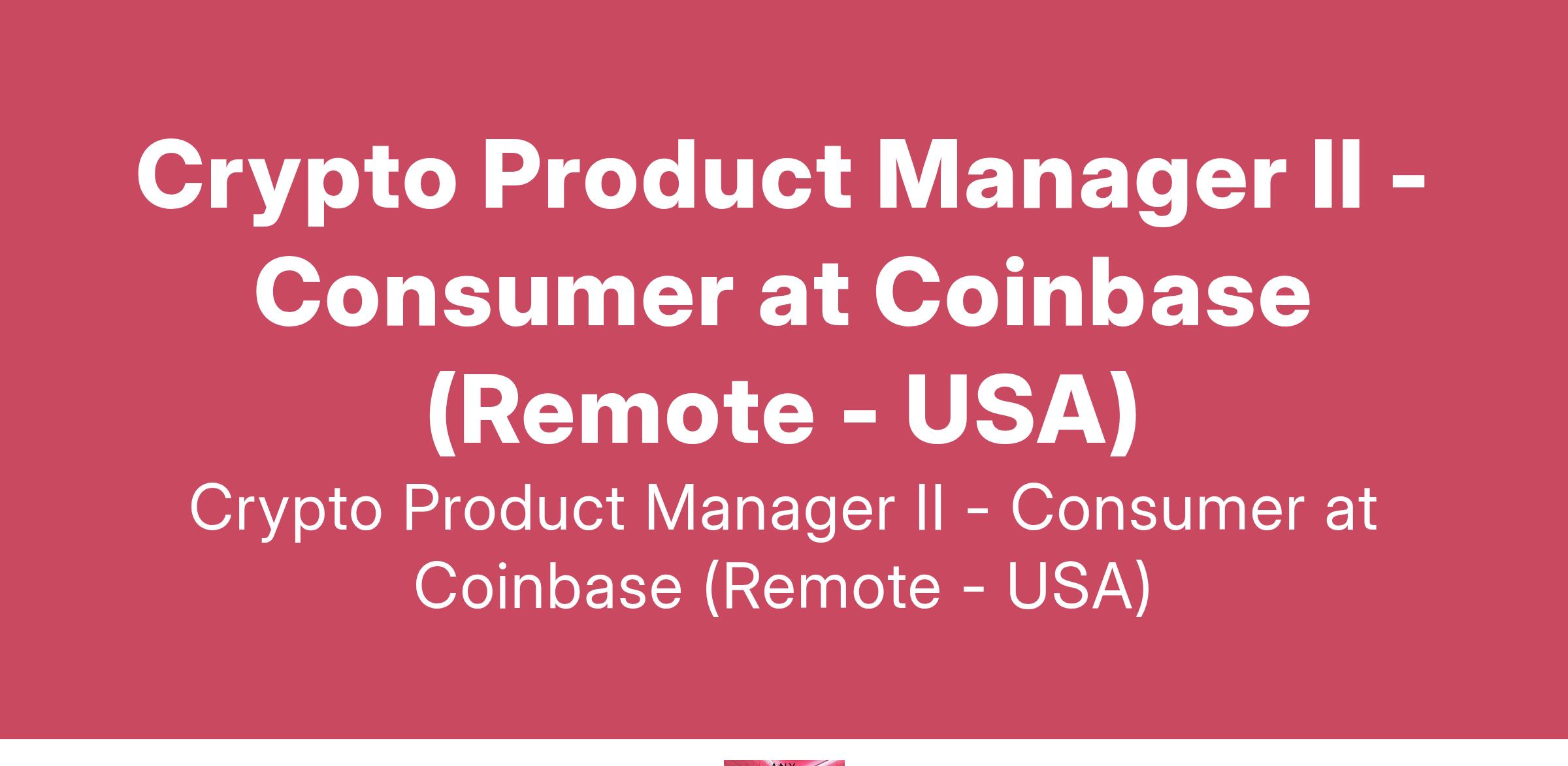 Crypto Product Manager II - Consumer at Coinbase (Remote - USA)